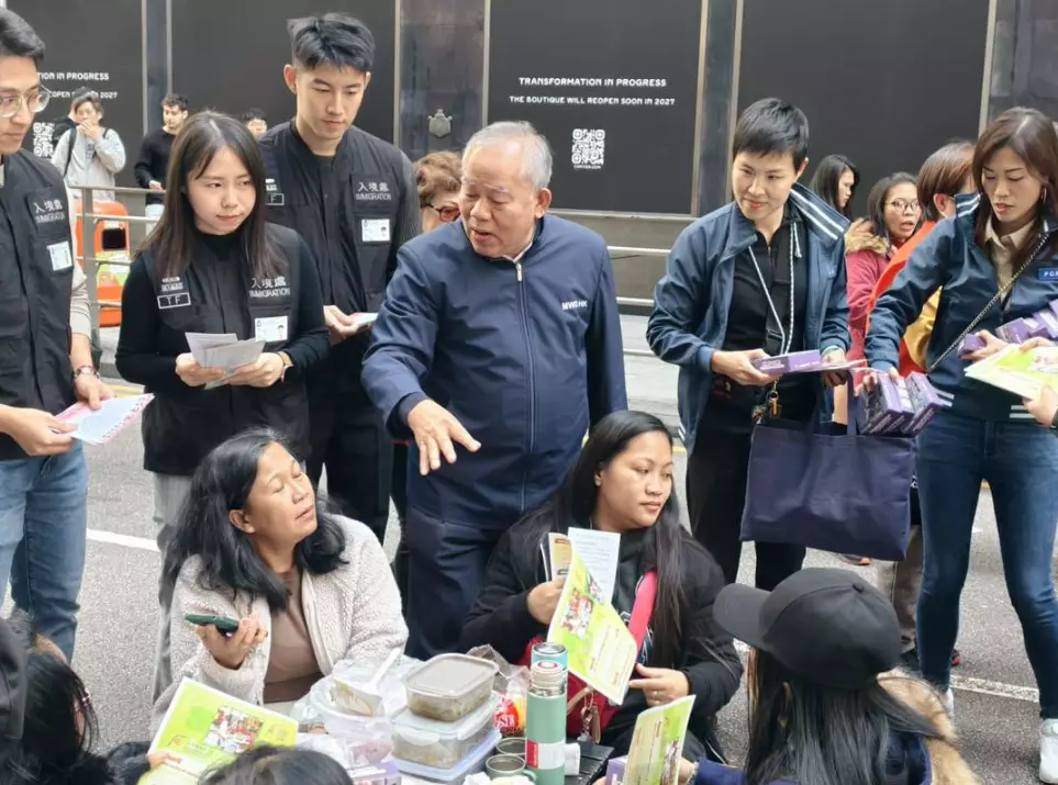 連結已複製! 香港警務處、食物環境衞生署、入境事務處及中西區關愛隊,聯同菲律賓駐香港總領事館移民工人辦公室,於星期日(1月4日)在中環遮打道一帶展開聯合宣傳行動,旨在提升市民及旅客的守法意識,防止非法聚賭、無牌擺賣、及違反入境規定等行為,同時派發防騙宣傳單張,宣揚防罪訊息,共建和諧有序的社區。 大家切記時刻保持警惕,慎防中招。如有懷疑,請立即致電「防騙易」熱線 18222。