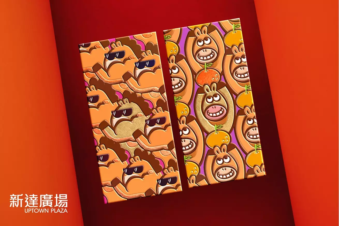 今年大埔新達廣場誠意推出限量「馬年吉祥」利是封套裝(共2款設計,一套2款、共8個),由自來自香港的視覺設計師與藝術家阿吉與小万來設計,兩款設計都以幽默搞笑的風格表現賀詞,希望將力量與祝福,放進每個紅包裡。利是封以燙金凸印工藝細緻呈現圓滾滾、充滿活力的小福馬,祝願大家新一年行運一條龍,福氣滿滿! 兩款設計配上雙倍祝福:「精力充沛」小福馬 — 活力滿滿,精神奕奕迎新歲!「吉星高照」大桔馬 — 好運齊來,財星高照賀豐年!大家於1月19日至2 月16日憑電子消費滿HK$400,即可換領乙套並送上共$100新達廣場及GO PARK優惠券。