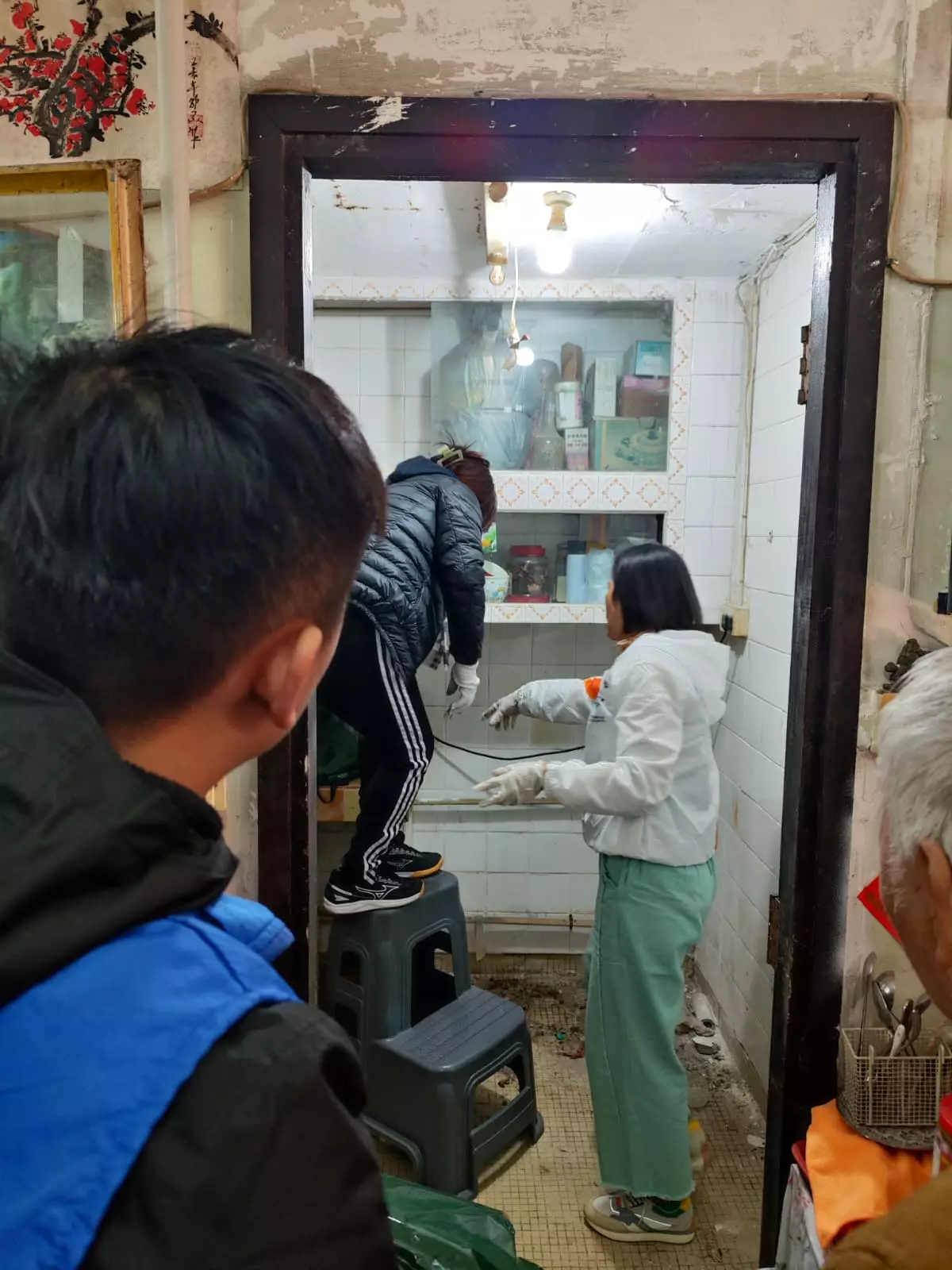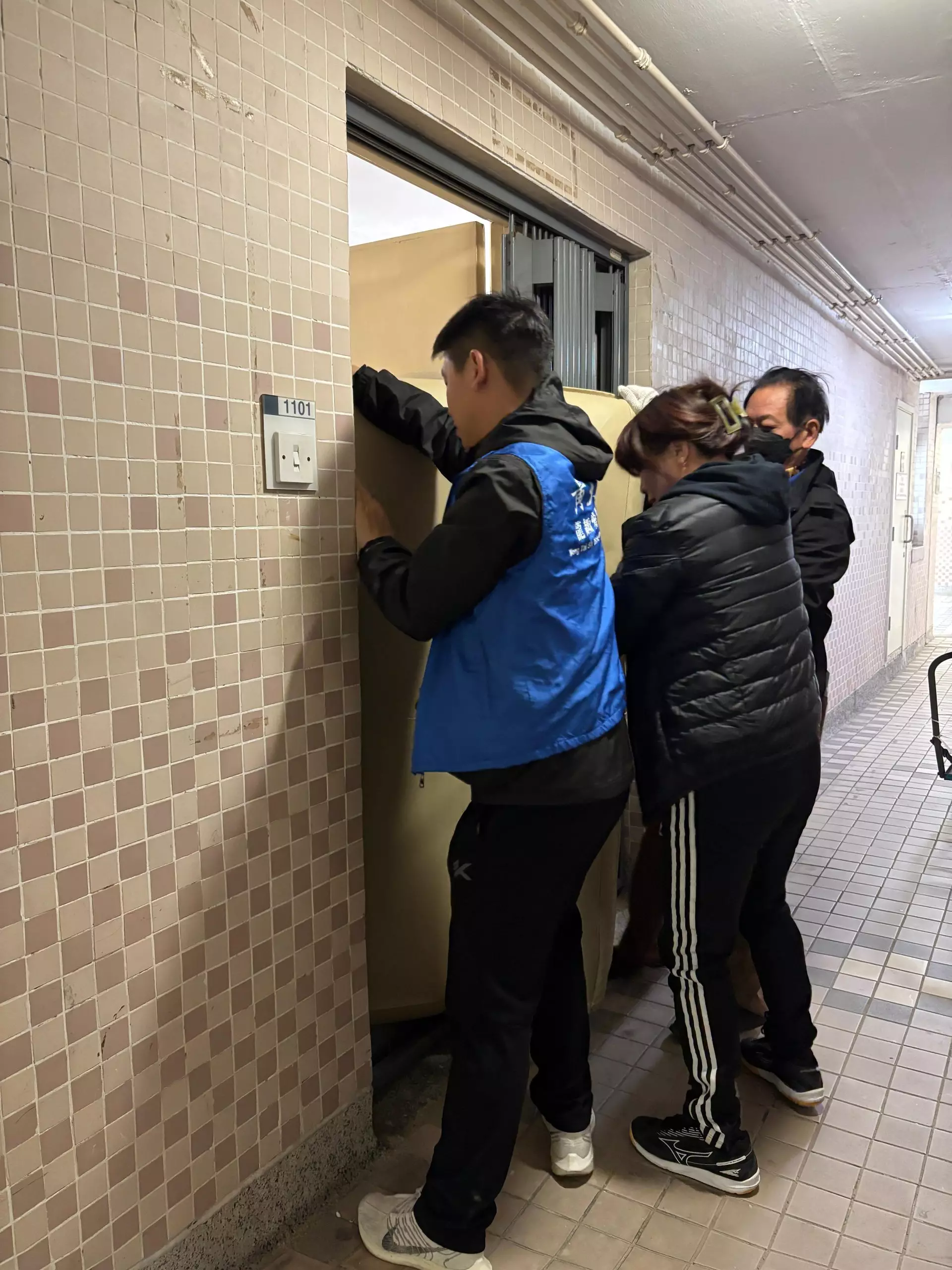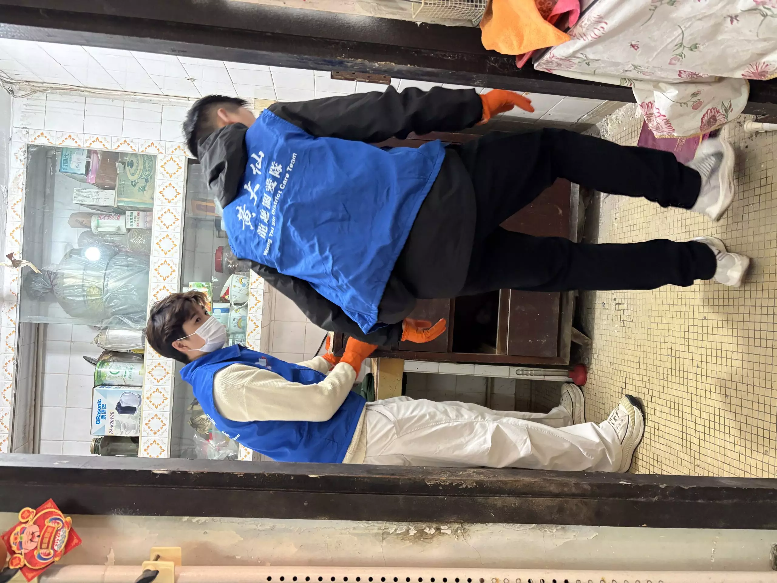 收到獨居長者求助,接獲房署有關居住單位需重鋪地台防水層通知,卻因行動不便,無力處理雜物騰空地方延誤工程進行。遂聯同關愛隊及房署轄下管理公司,協助長者斷捨雜,移開儲物櫃,以便工程展開,完工後再助其還原家俬物品。