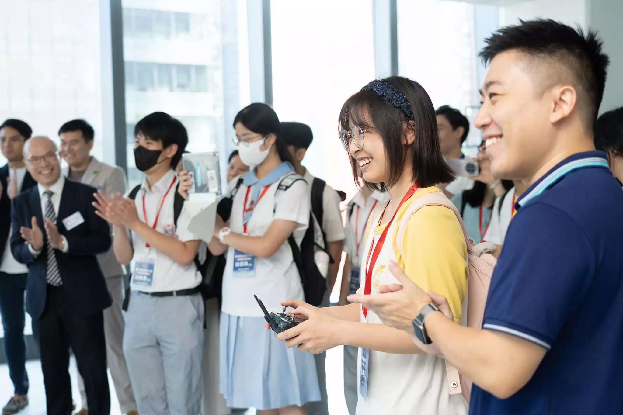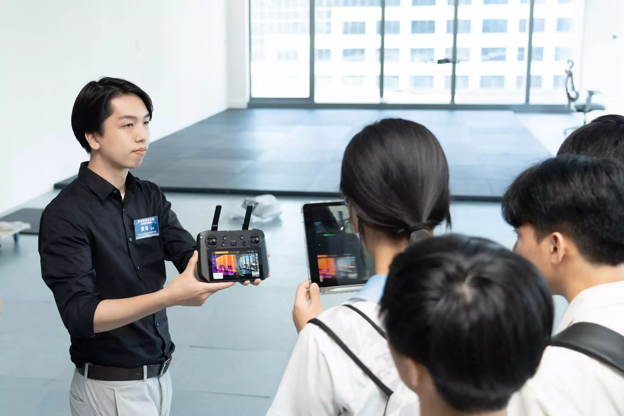 喺首席營運總監何進一帶領下,同學們了解AI嘅真實應用,見證無人機作「超視距」大廈外牆檢測,精準搵出同記錄破損位置,去除原本費時嘅工序。同學們仲接觸到仍處研究階段嘅迷你無人機,喺升降機槽等密閉空間嘅檢查優勢。現場嘉賓與同學手持不同型號無人機試用,同學一邊操作、一邊驚嘆:「今次體驗令我對未來職涯多咗一份想像!」