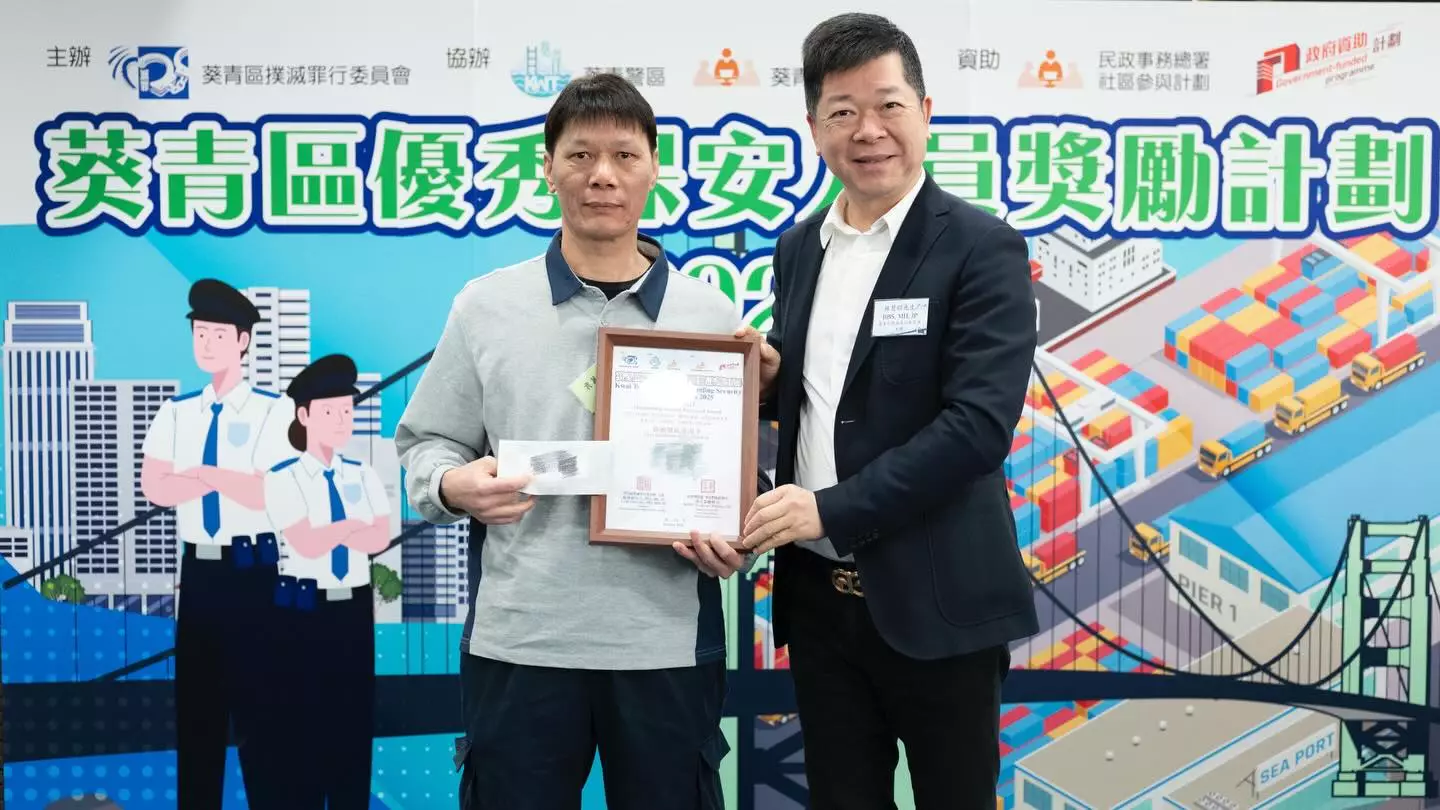 連結已複製! 今日(15/1)葵青警區聯同葵青民政事務處,一齊為「葵青區優秀保安人員獎勵計劃2025」舉行頒獎典禮,表揚一班默默守護社區嘅無名英雄。 30位得獎者都曾經協助防止同偵破罪案,真係功不可沒!佢哋嘅警覺同專業,正正體現咗「警民攜手、守護葵青」嘅精神。 小編心聲:社區安全真係要靠每一位!多謝所有保安業界夥伴一直同行,一齊預防罪案、保護葵青。你哋嘅努力,大家睇得到!
