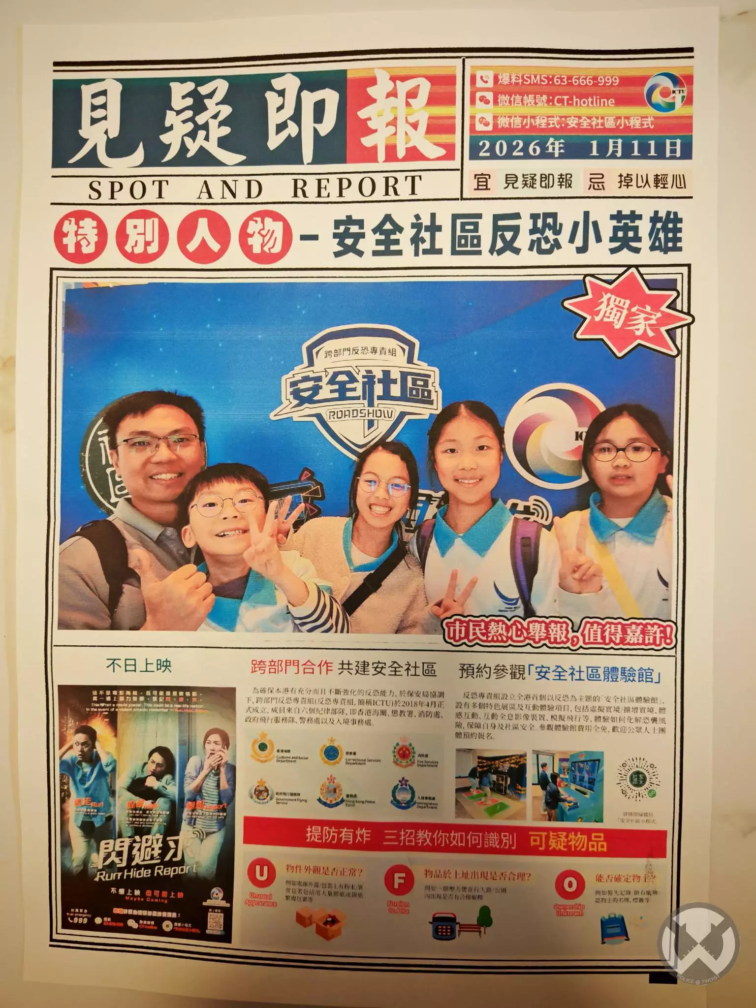 1月11日(星期日),一班荃灣區少年警訊成員,參加了由香港警務處跨部門反恐專責組(ICTU)於荃新天地一期舉行的「ICTU 安全社區 Roadshow」遊戲活動。荃灣少訊成員即場化身反恐小英雄,體驗多個緊張刺激的反恐遊戲,從中學習應對危機的知識與技能。