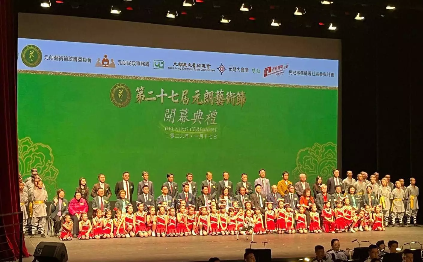 期待已久,兩年一度嘅元朗藝術節返嚟喇!由元朗區文藝協進會、元朗大會堂、元朗民政處合辦嘅第27屆元朗藝術節開幕典禮喺1月17日於元朗劇院演藝廳圓滿舉行 !民政總署署長杜潔麗、元朗民政專員馬富威、港區人大代表沈豪傑、全國政協委員呂堅、中聯辦新界工作部副處長龐杰釗,以及藝術節統籌委員會主席曾憲強、副主席黃就添等主禮嘉賓都有到場主禮。