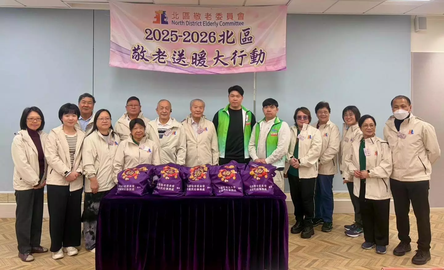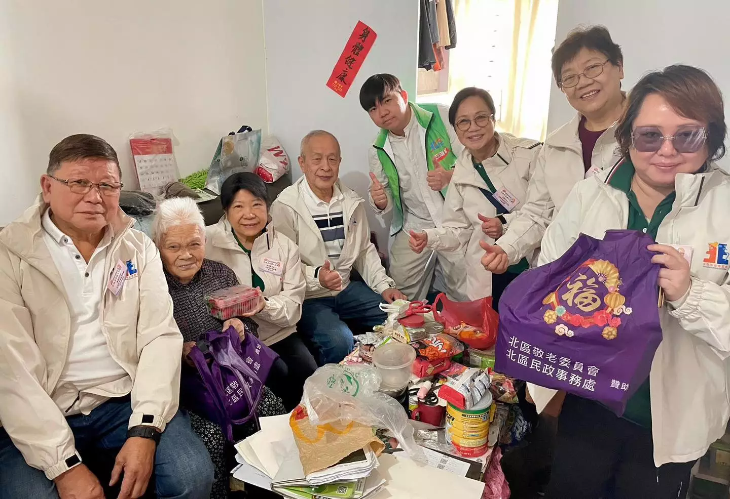 新年伊始,北區敬老委員會及北區民政處繼續傳承「老吾老,以及人之老」嘅精神,攜手 合辦「北區敬老送暖大行動」。今次活動聯同北區17間長者服務機構、地區團體及4個鄉事委員會,亦邀請北區石湖墟關愛隊一同參與 走訪 有需要嘅長者 家庭進行探訪及送上福袋,福袋禮物包仲特別加埋敬老會委員自家種植嘅有機蔬果 ,以表達我哋對區內長者真摯嘅問候、支持 同祝福 。
