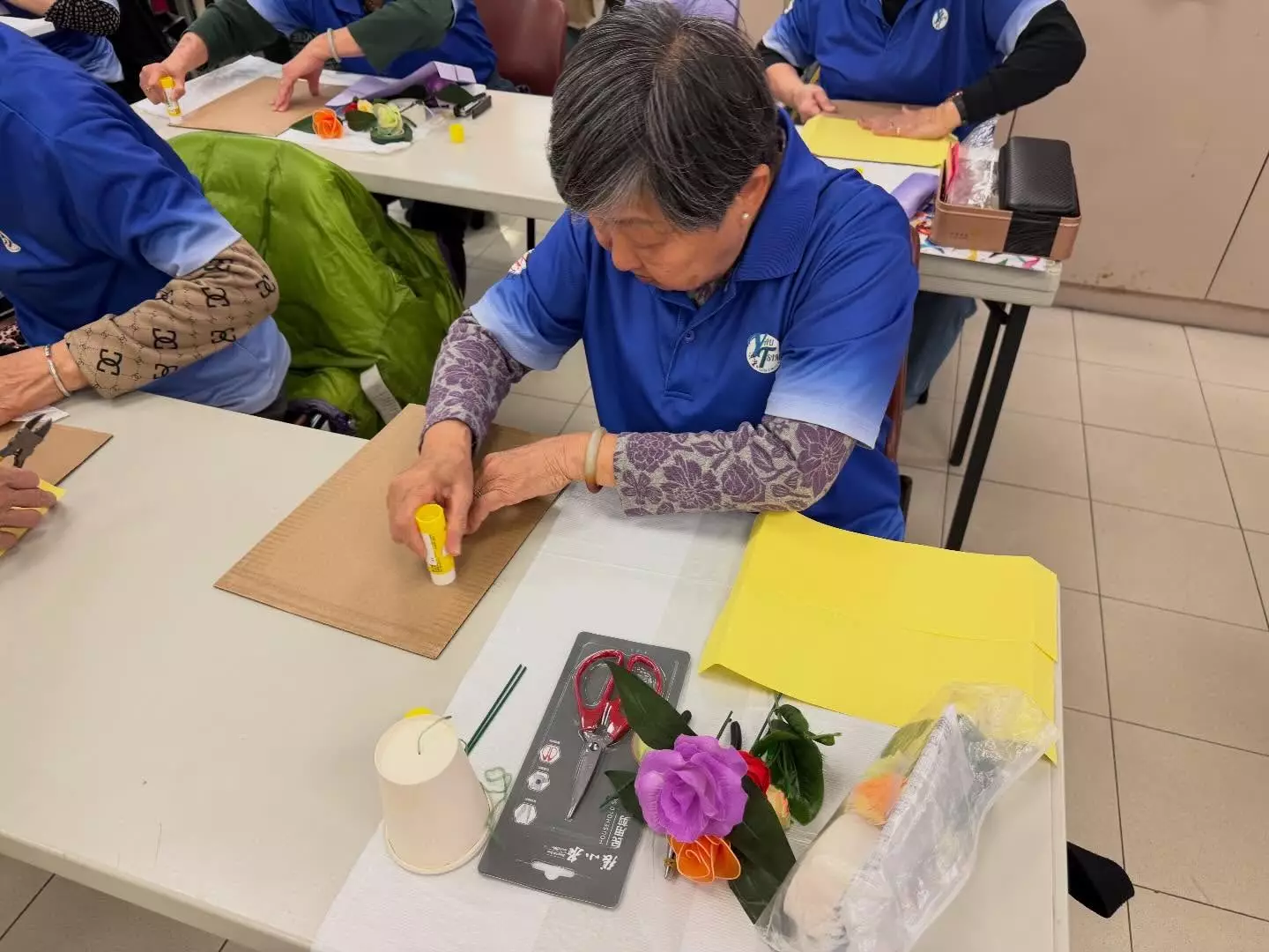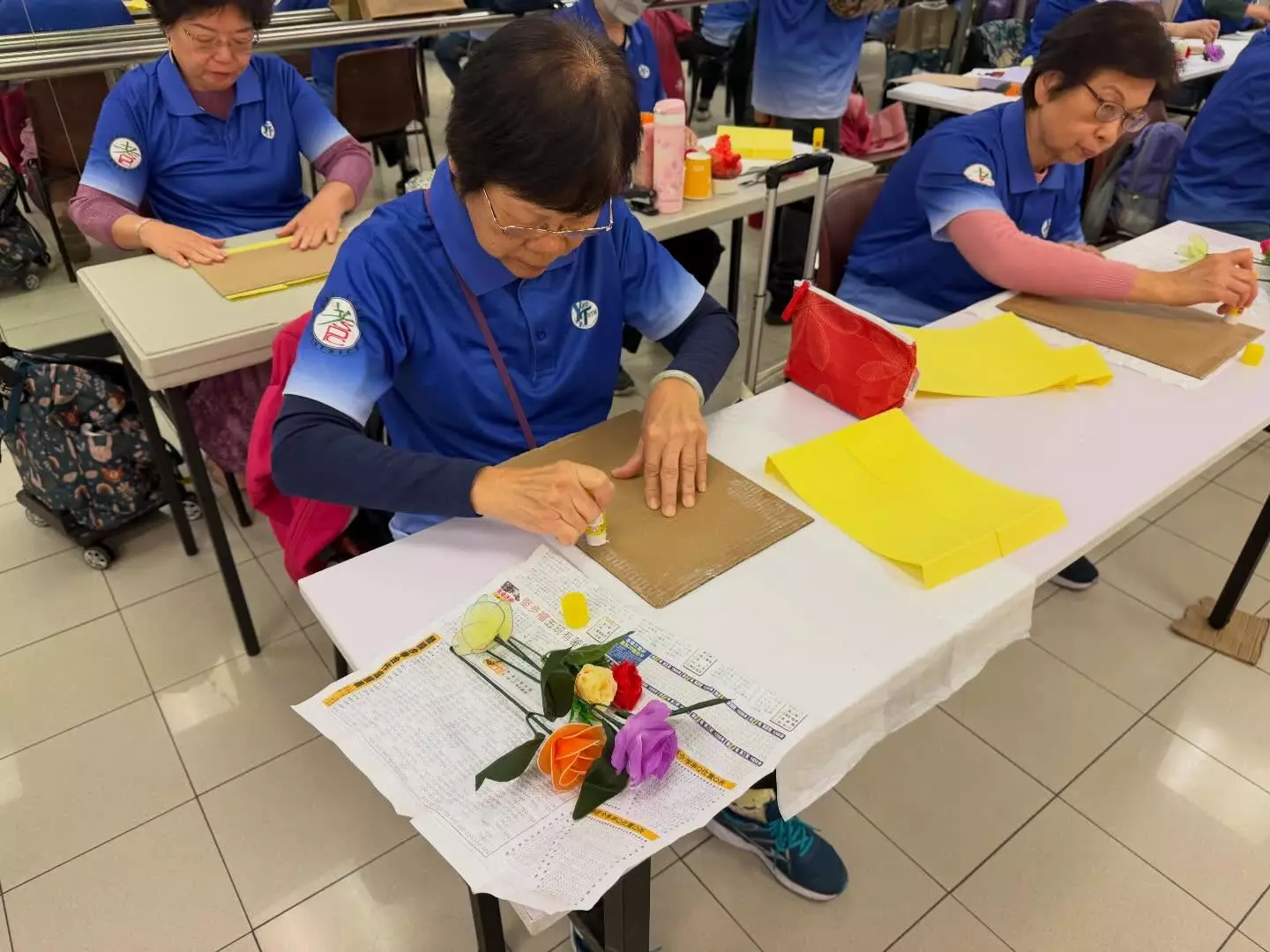 耆樂警訊會員透過學習絲網花製作,可以提升自身協調能力,用眼看、用耳聽,用手做,可訓練長者的手腦協調及提升其專注力。