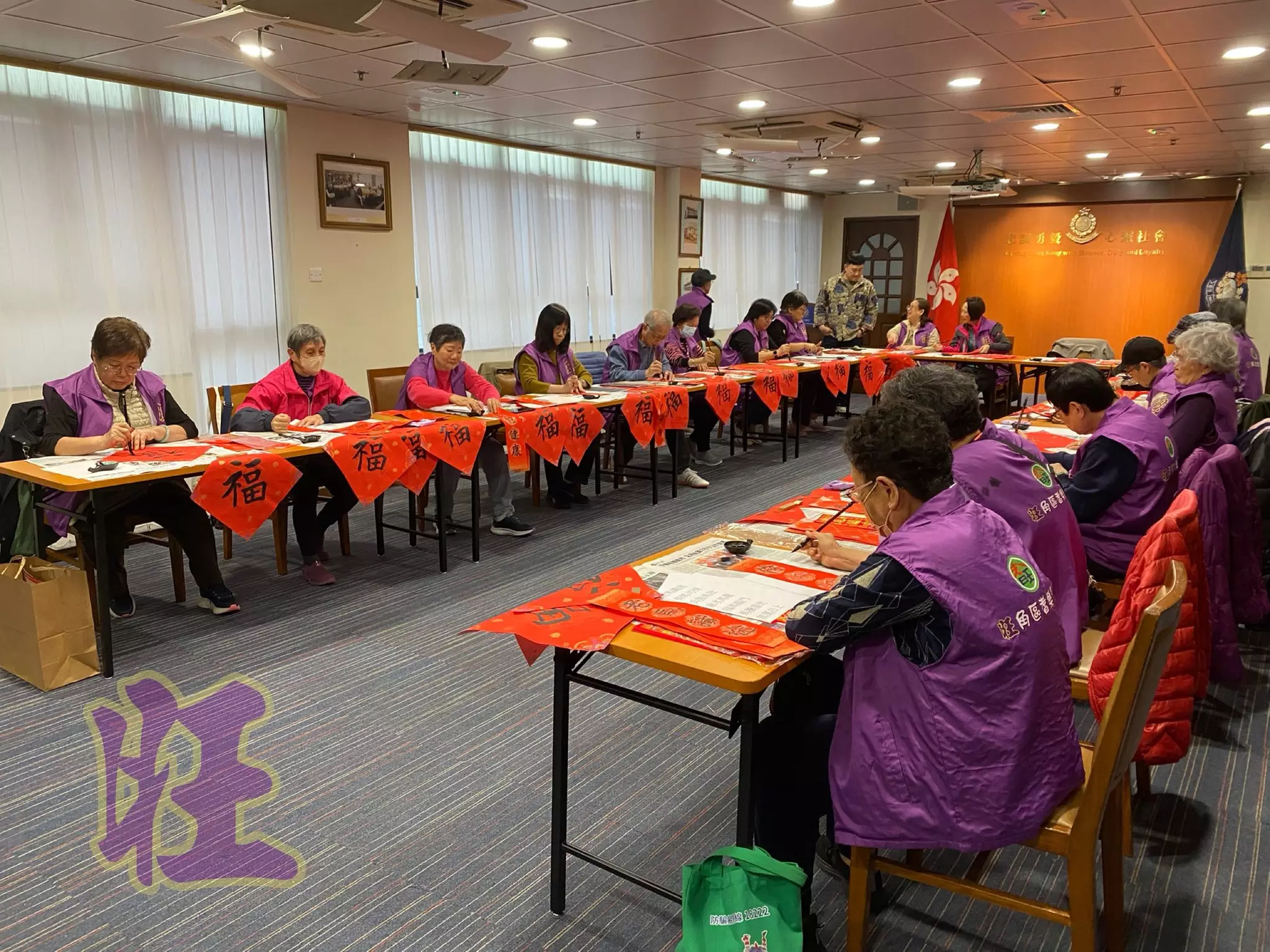 連結已複製! 年味漸濃,旺角耆樂警訊的新年揮春班迎來了最後一堂課。唐sir 繼續耐心指導一班可愛的老友記,一筆一劃,在紅紙上寫下心意與傳統祝福。 大家除了專注練習「福」字,還書寫不同的揮春以賀新年。在一筆一劃間,福氣彷彿也漸漸凝聚。唐sir 還即興揮筆,為每位老友記寫下獨一無二的揮春祝福,包括「身體健康」的關懷、「一本萬利」祝願,以及「一帆風順」的期盼。每一張紅紙,都是他親手遞上的一份心意。祝所有老友記們新年快樂,身體健康。