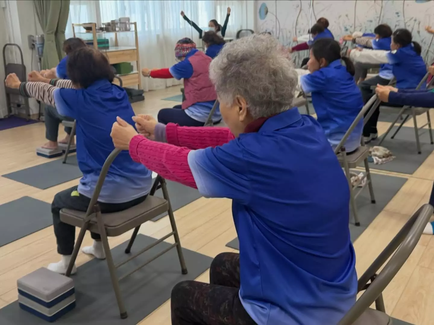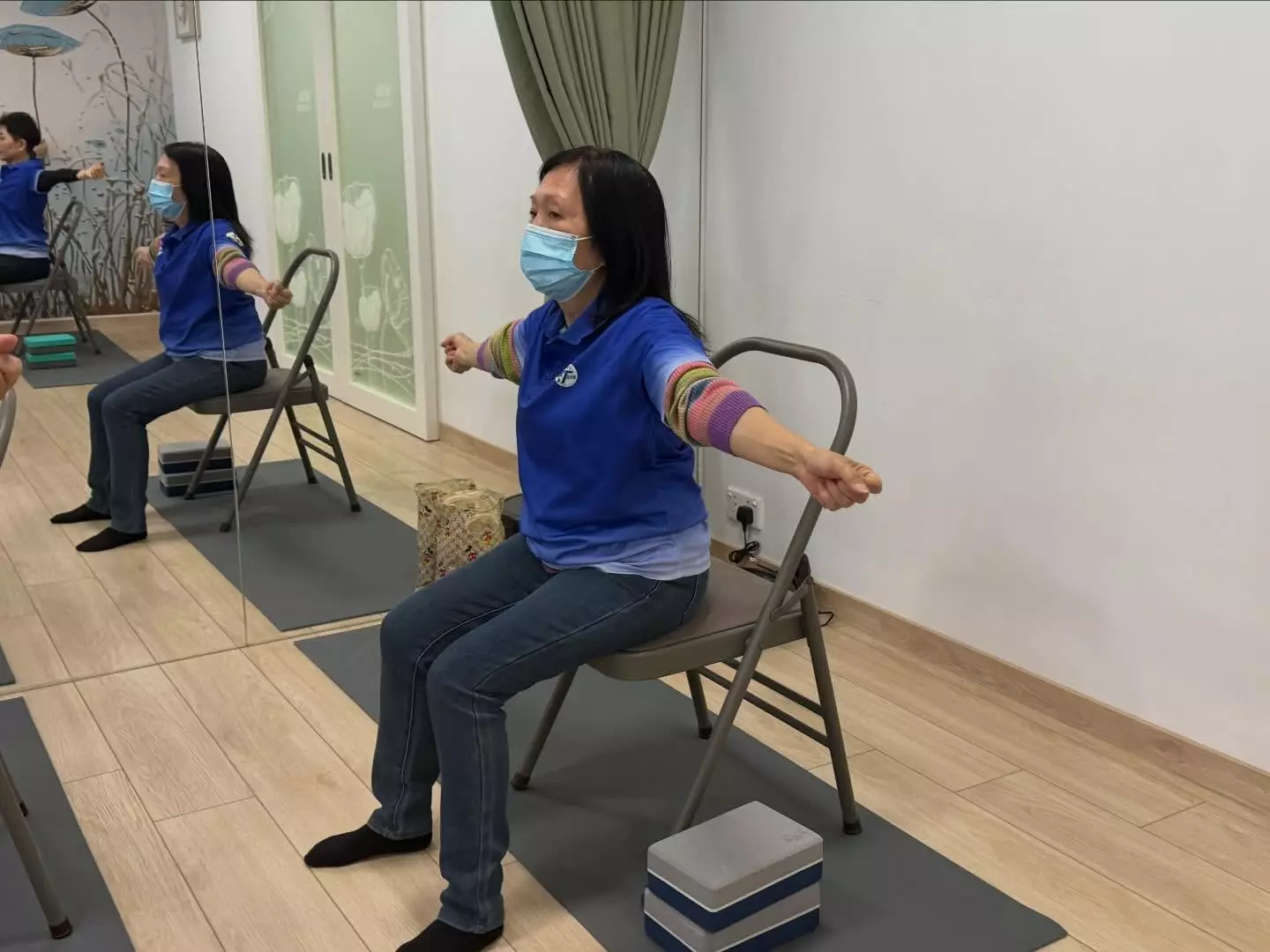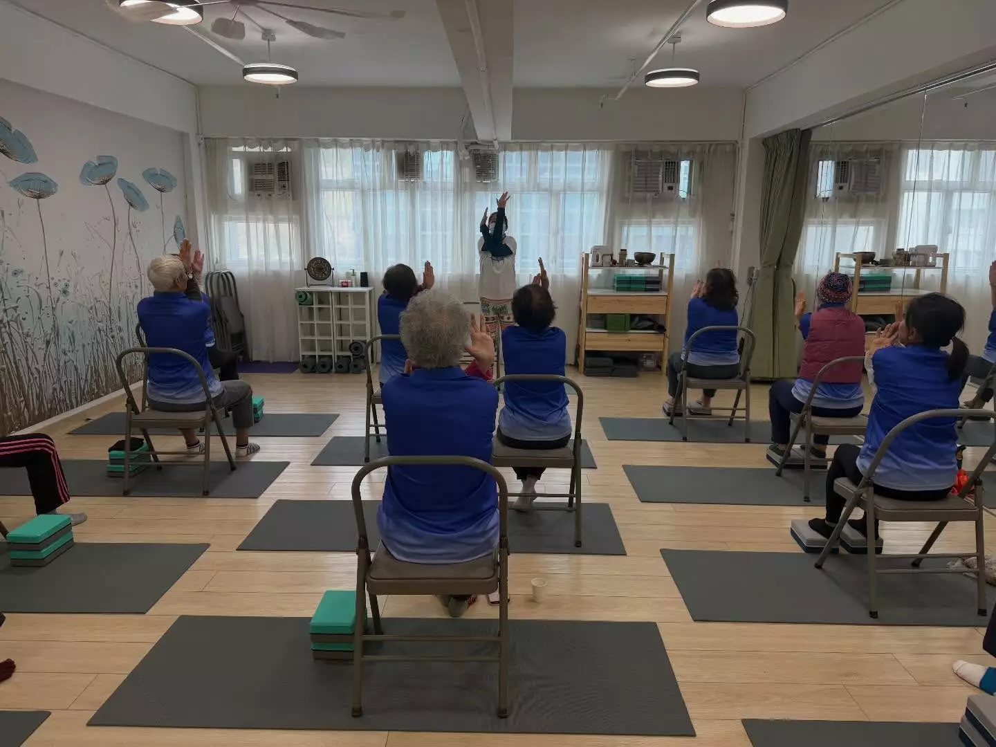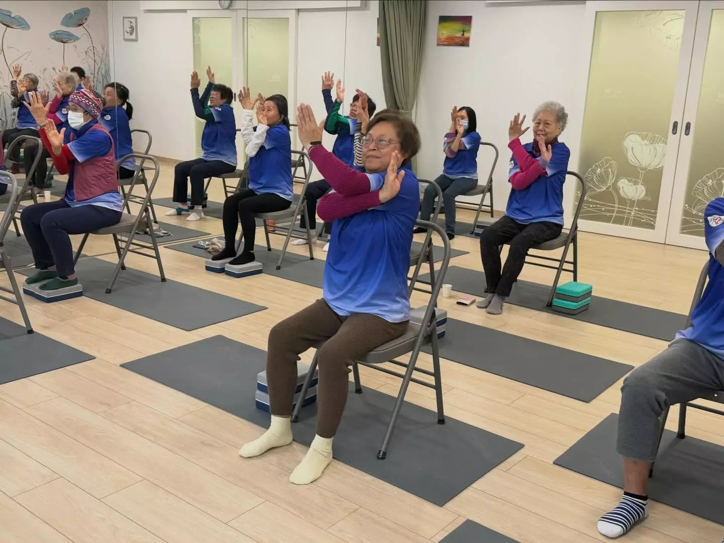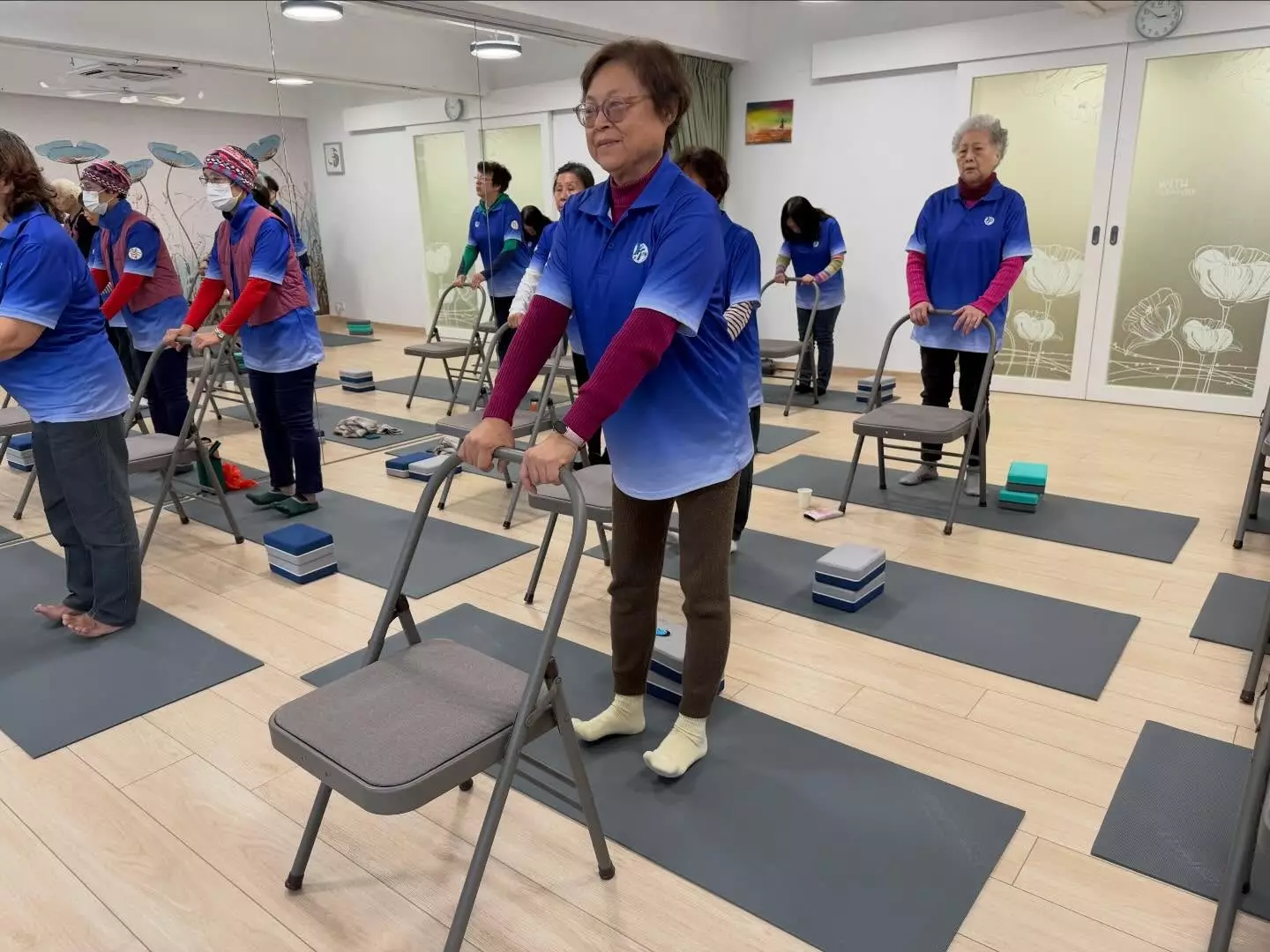 連結已複製! 耆樂警訊會員參與由油尖區康樂體育會主辦,在「瑜樂伽教室(Sliver Yoga)」進行的椅子瑜伽班及活力瑜伽班。 由經驗豐富的瑜伽導師教授,課程內容淺白易明,許多老友記都容易做到。 「椅子瑜伽」是坐在椅子做動作,對於一些有膝患或膝蓋曾經做過手術的長者較為適合;而「活力瑜伽」則適合許多長者。 瑜伽是一種帶氧運動,能強健體魄,對身、心都健康,而且瑜伽班一直都是最受老友記歡迎的活動。 歡迎著重身心健康的老友記參加。 特此向「油尖區康樂體育會」致謝。