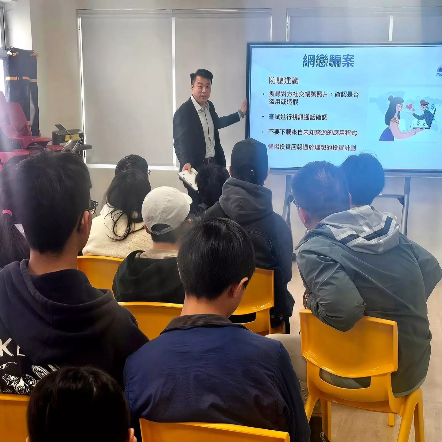 連結已複製! 今日(2026年1月24日),油尖警區學校聯絡主任,到訪油麻地「YMCA」,向30多名學生義工及社工提供防騙講座,講解最新騙案手法及趨勢,以及增強他們的防騙技巧,並向他們介紹防騙視伏器的最新功能。 除此之外,亦向他們講解騙案案例,讓他們更有效掌握最新騙案手法,再作其他宣傳反騙活動。 希望大家時刻都緊記「提防騙子」!