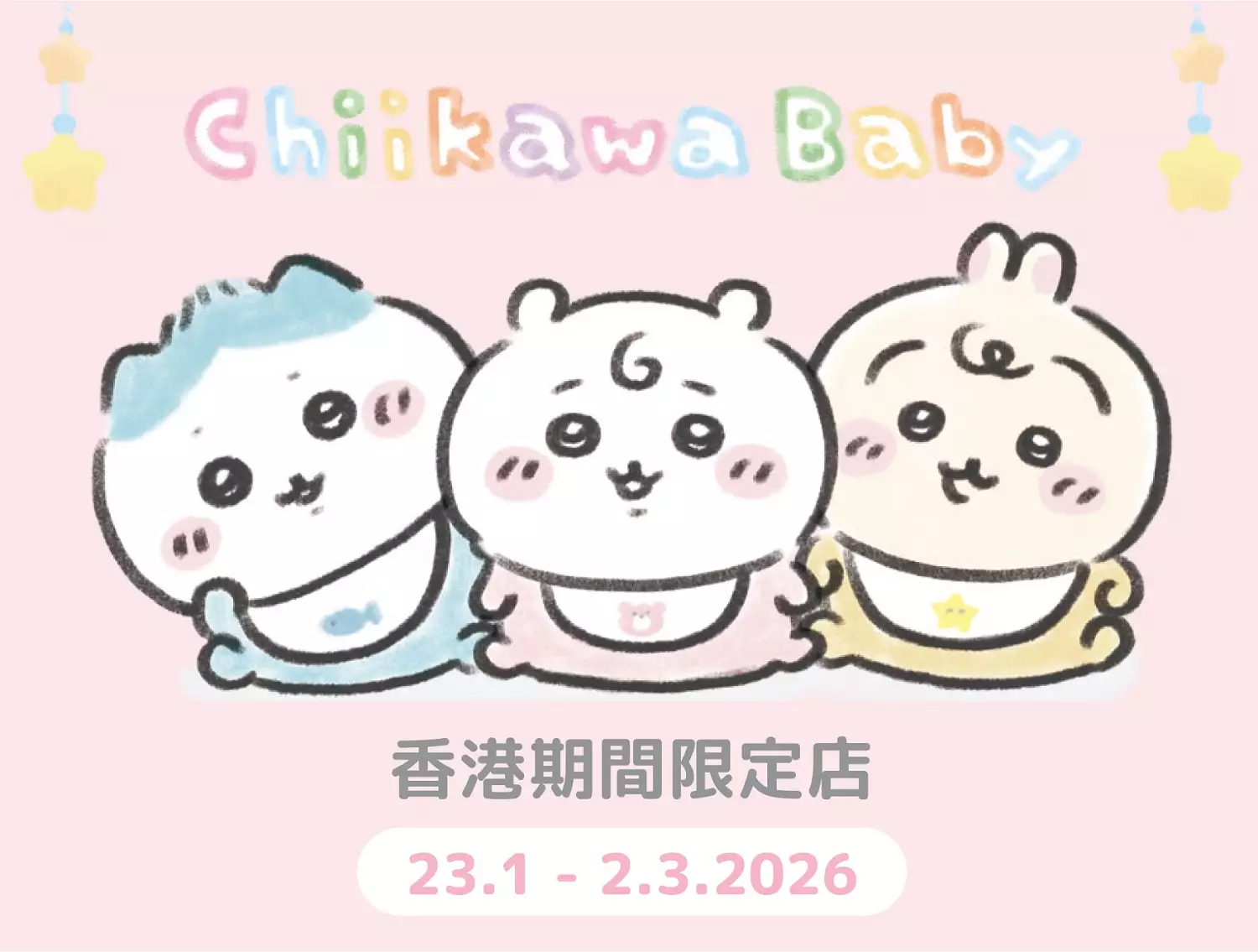 新一年,MOKO再為大家帶來驚喜,由本地人氣生活品牌NIKO-NIKO Lifestyle Store獨家呈獻Chiikawa Baby香港期間限定店,於1月23日至3月2日與大家見面!這次快閃店重現日本官方巡迴快閃店場景,帶領大家走進充滿治癒與童趣的Chiikawa Baby夢幻世界!店內設有兩大必影打卡位,還匯聚多款日本直送官方授權商品,更令人心動的是,「Chiikawa Baby」第2彈新品將與日本同步發售,香港粉絲無需遠赴日本,即可入手最新限定寶物。約定大家一同投入Chiikawa Baby的軟萌懷抱,展開一場療癒滿滿的打卡購物之旅,與親友共享歡樂時光!