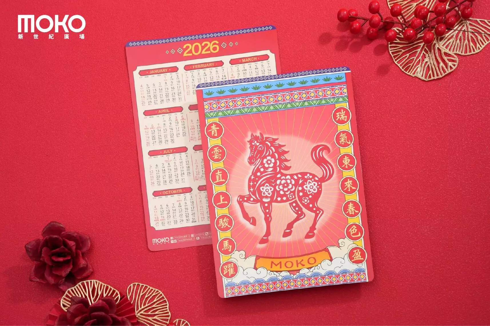 新世紀廣場隆重呈獻【新春開運馬年企劃】,多重節日驚喜與您共迎福氣滿盈的馬年。今年,MOKO以創意與傳統交織,率先推出極具收藏價值的賀年好物 —「財福滿JOY利是封」融合潮語與喜慶元素;「馬到Luck來2026年曆卡」則以復古曆書為靈感,寓意新一年好運連連,更準備了「Horse連連開運禮盒」,讓您傳遞雙倍新春至誠祝福!