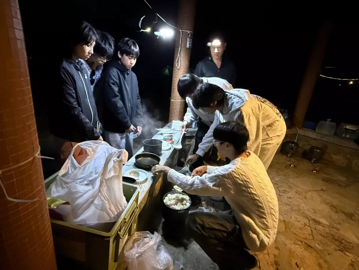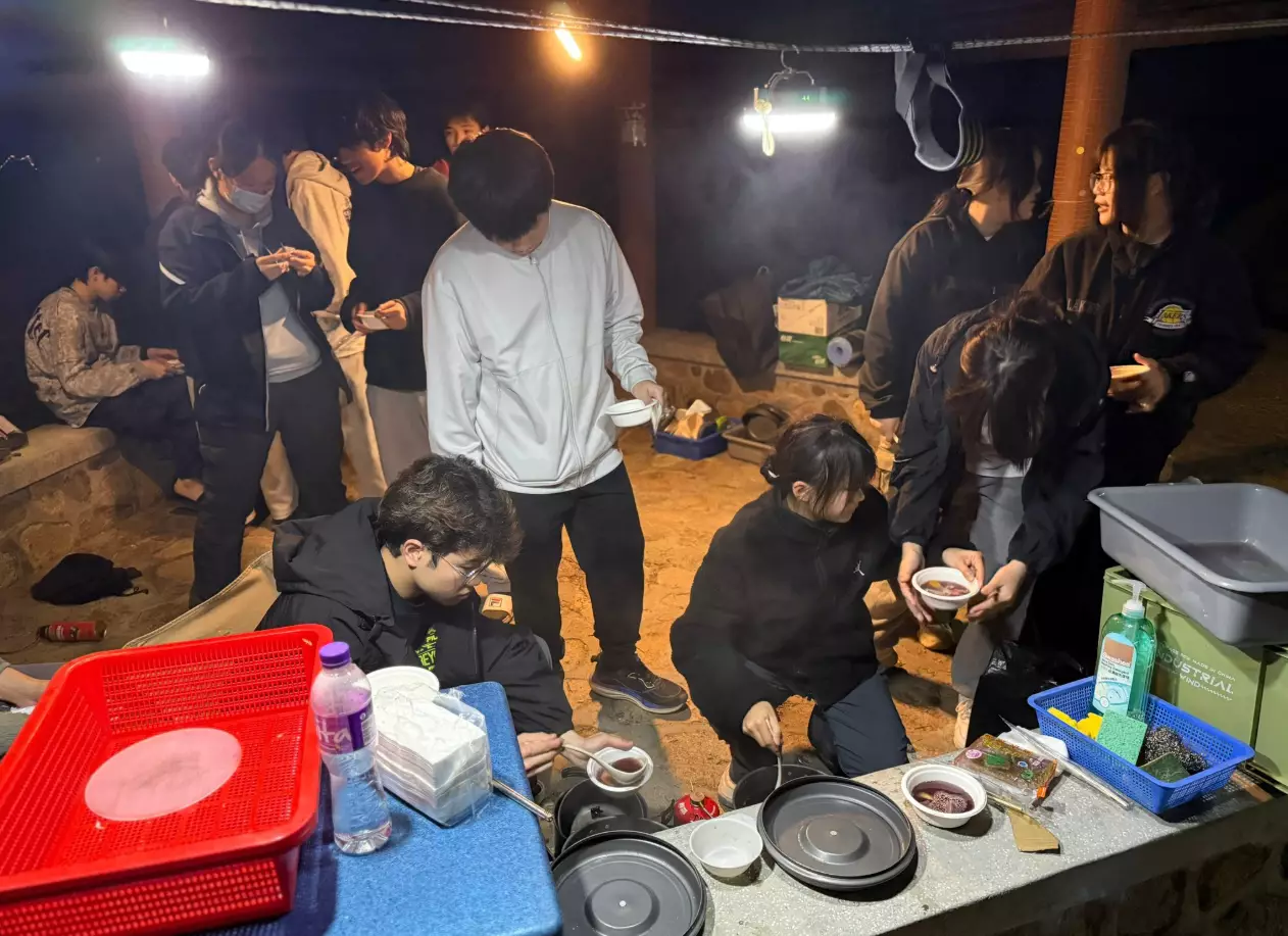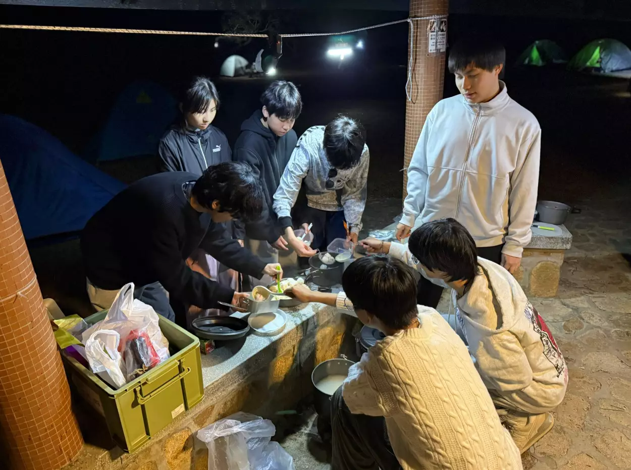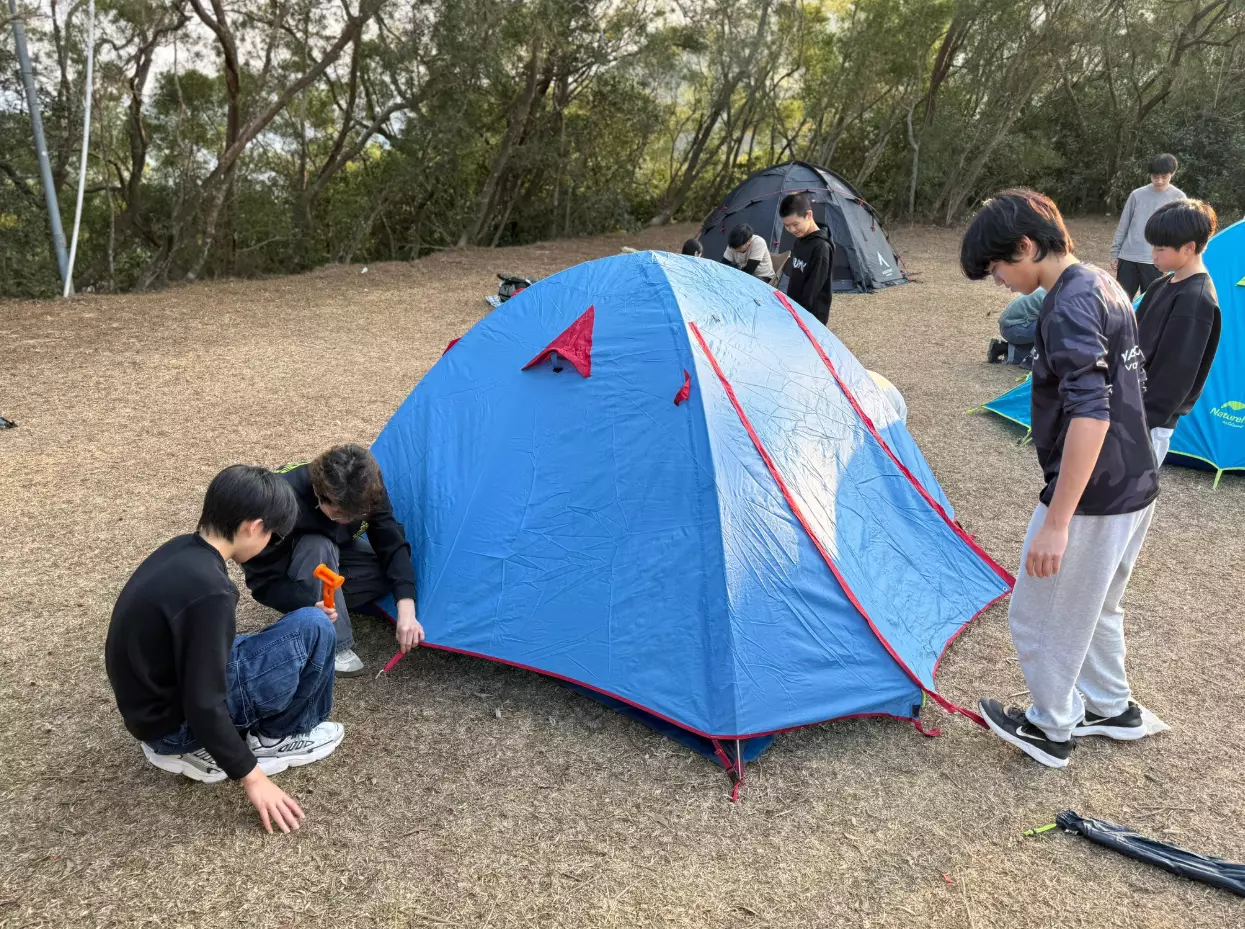 露營第一日大家由零開始,學習 喺營地搵位、搭帳篷、準備食材等等,每個會員之間都合作無間。晚餐大家一齊喺寒風中圍住 「烚下烚下」 ,通過自己勞動換來嘅成果真係特別有意義!喺呢個過程當中唔單止學識咗野外求生基本技能,仲加強咗自己嘅自理能力同責任感。夜晚我哋仲一齊行夜山探險,靠住頭燈照亮山路,互相提點,喺黑暗中學識信任同觀察!