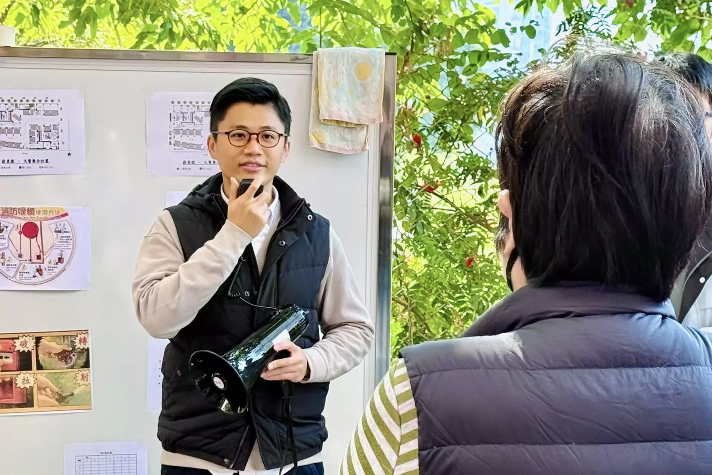 業主立案法團為住戶派發求生哨子,並現場講解國際通用求救信號(三短三長三短)的節奏要領,讓居民在鞏固逃生知識的同時,多掌握一項實用求生技能。
