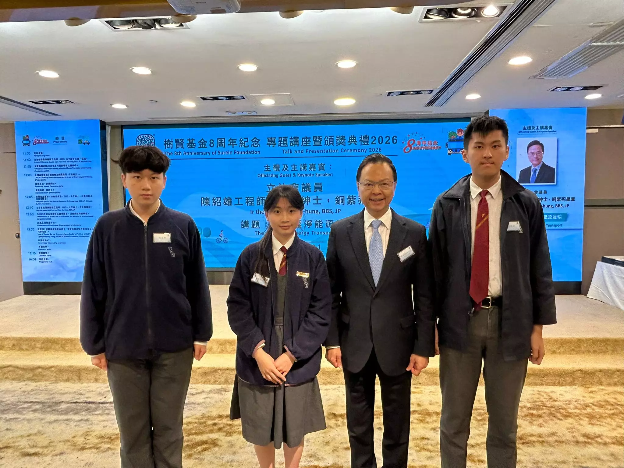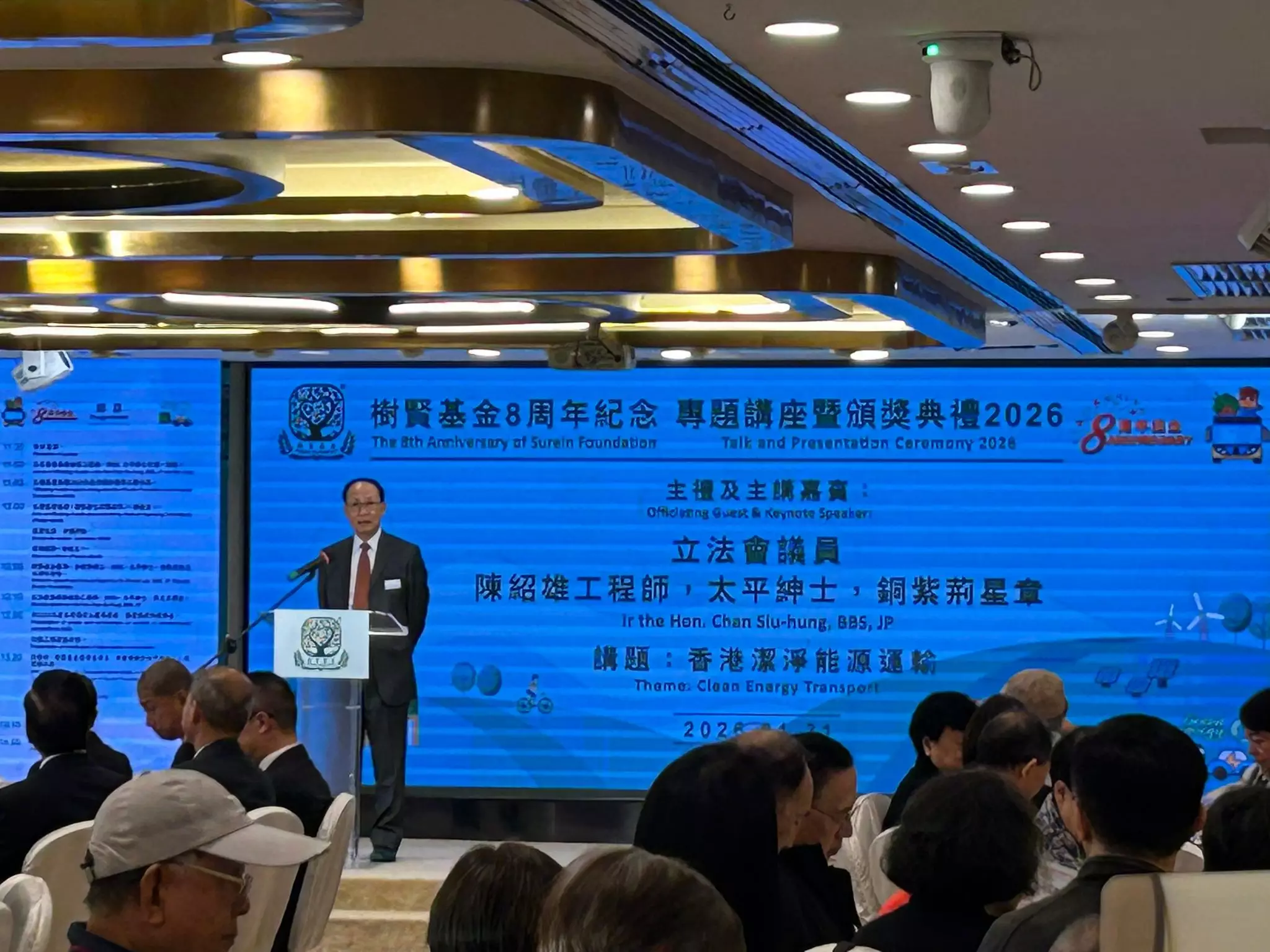 樹賢基金周六(1月31日)舉辦成立八週年紀念活動,向過去一年榮獲基金的環保獎學金、及參與環保主題比賽的得獎者頒發獎狀。活動邀請立法會議員陳紹雄工程師擔任主禮及主講嘉賓。