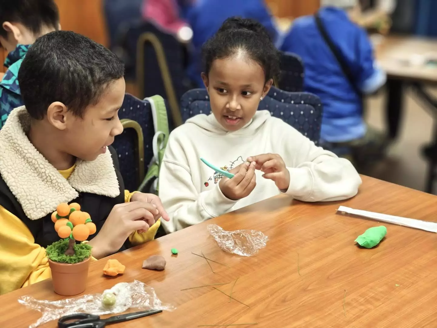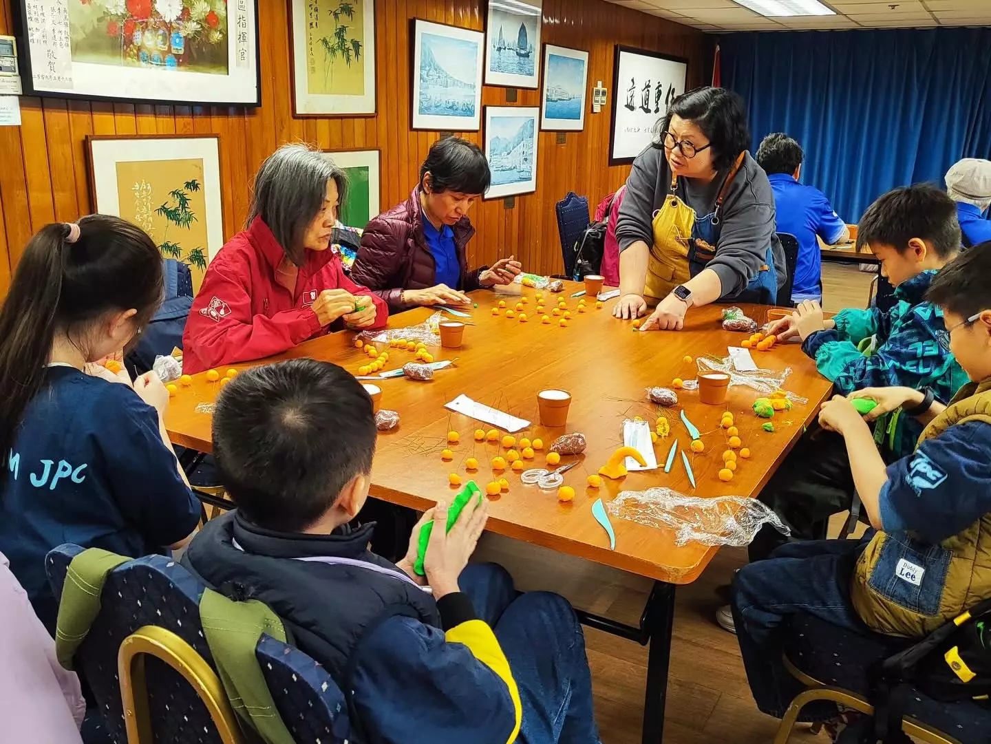 導師悉心教導大家如何用紙黏土製作年桔用於盆栽擺設上,為即將來臨的馬 年添置家中擺設,增加新春氣氛。