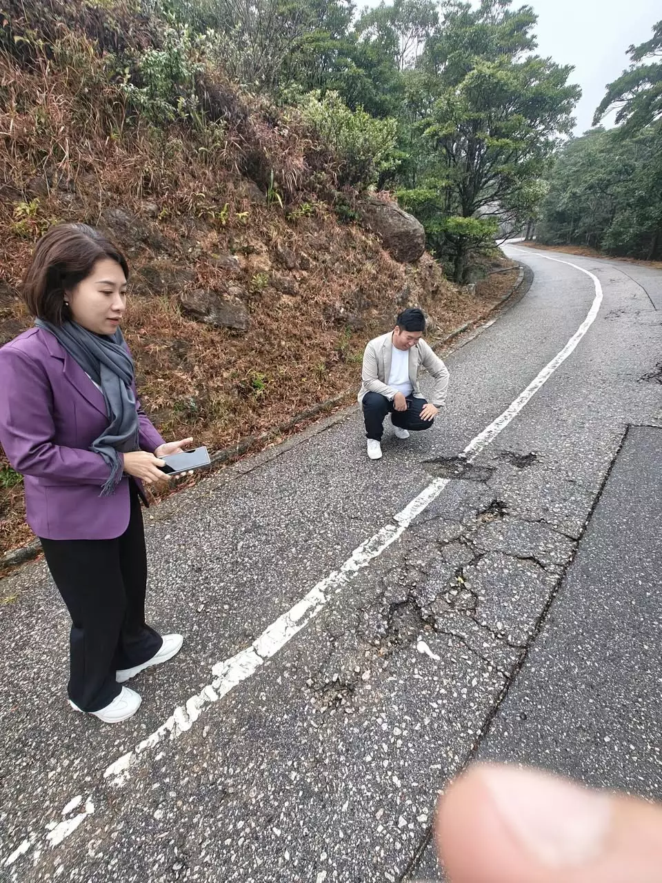連結已複製! 荃灣區議員林婉濱近日聯同川龍村王村長、立法會郭芙蓉議員及黃啟進區議員,實地視察大帽山路路面狀況,發現沿途多處出現凹陷,部分曾經修補的位置再次損壞,路面情況持續惡化。 該路段雖未設置路燈,晚間仍有不少觀光車輛行駛,凹凸不平的路面構成潛在安全風險。團隊將向路政署正式反映情況,要求盡快安排維修,並建議優先考慮對整條路段進行全面重鋪,避免僅作局部小修小補,從根本改善道路安全與行車品質。 來源:林婉濱FB