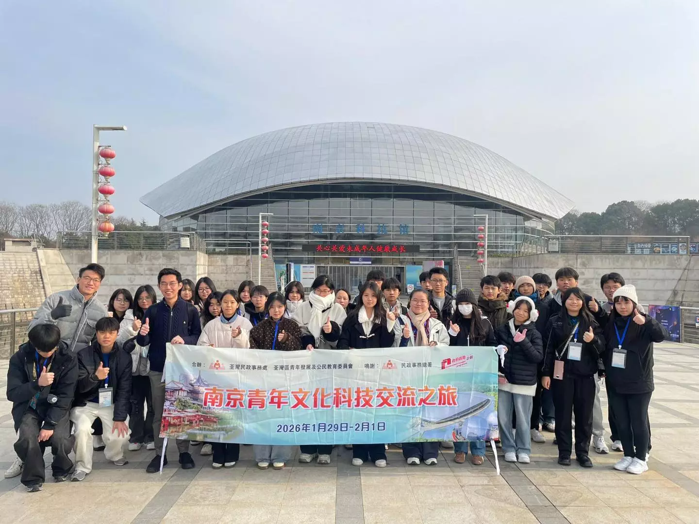 青年放眼未來,交流啓航新程!荃灣區青年發展及公民教育委員會喺29/1至1/2舉行咗4日3夜嘅交流團,荃灣民政助理專員張澤豪與活動小組召集人葛兆源親自帶隊,聯同30位荃灣區中學生一齊探索南京歷史文化與科技發展。