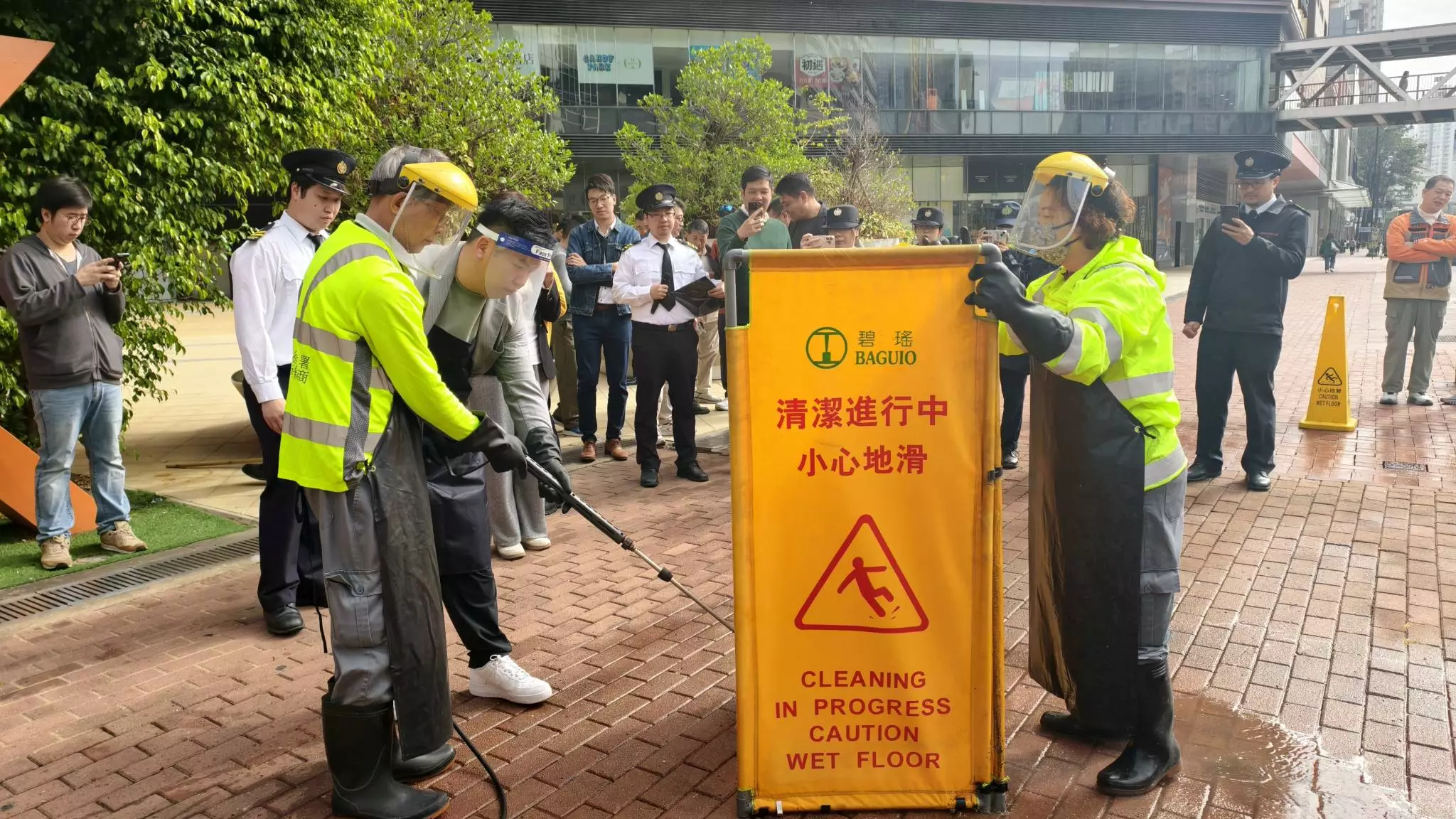 行動首站來到荃灣愉景新城青山公路一帶,一行人重點關注該區域非法餵飼白鴿所衍生的衛生問題。為改善現場環境,工作人員對該路段行人路進行了清洗作業,黃啟進議員亦親身參與其中,體驗使用高壓水槍清理路面,以實際行動帶動大家參與社區清潔。