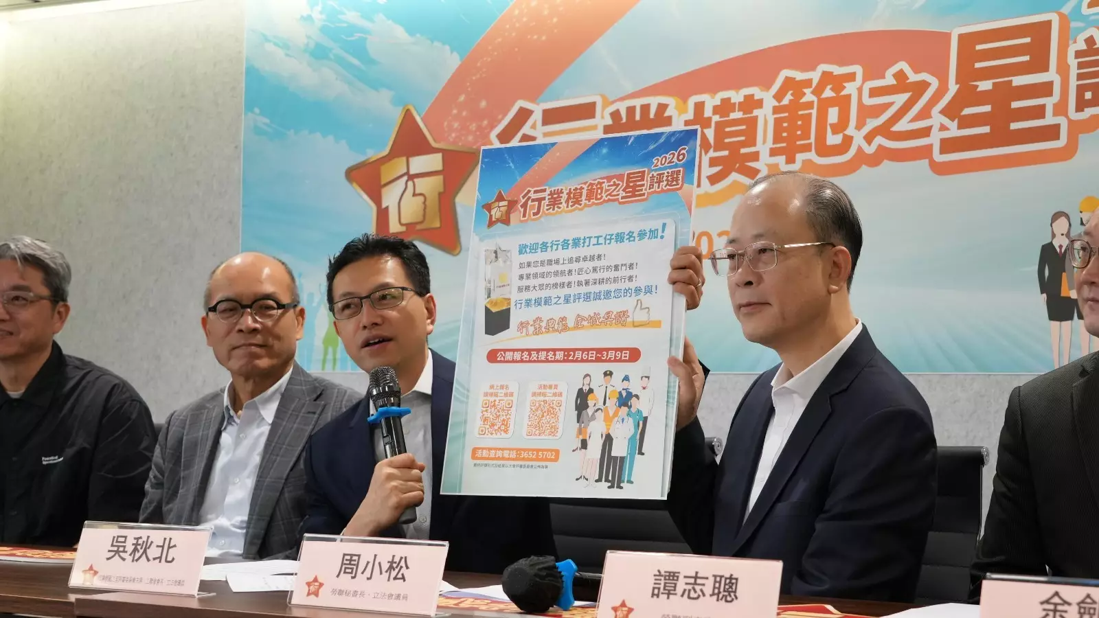 由香港工會聯合會(工聯會)牽頭,聯同勞工界、主要商會團體共同籌辦,並獲特區政府支持的「行業模範之星」2026年度評選,今日(2月6日)正式開始報名,評審委員會代表舉行記者會,向社會大眾及傳媒簡介今屆評選的宗旨及有關流程。本屆評選以「行業典範 全城共讚」為口號,旨在表彰香港各行業各崗位的打工仔,肯定大家對香港的貢獻,藉此弘揚勞動精神,樹立專業典範,表彰先進,為社會注入更多正能量。