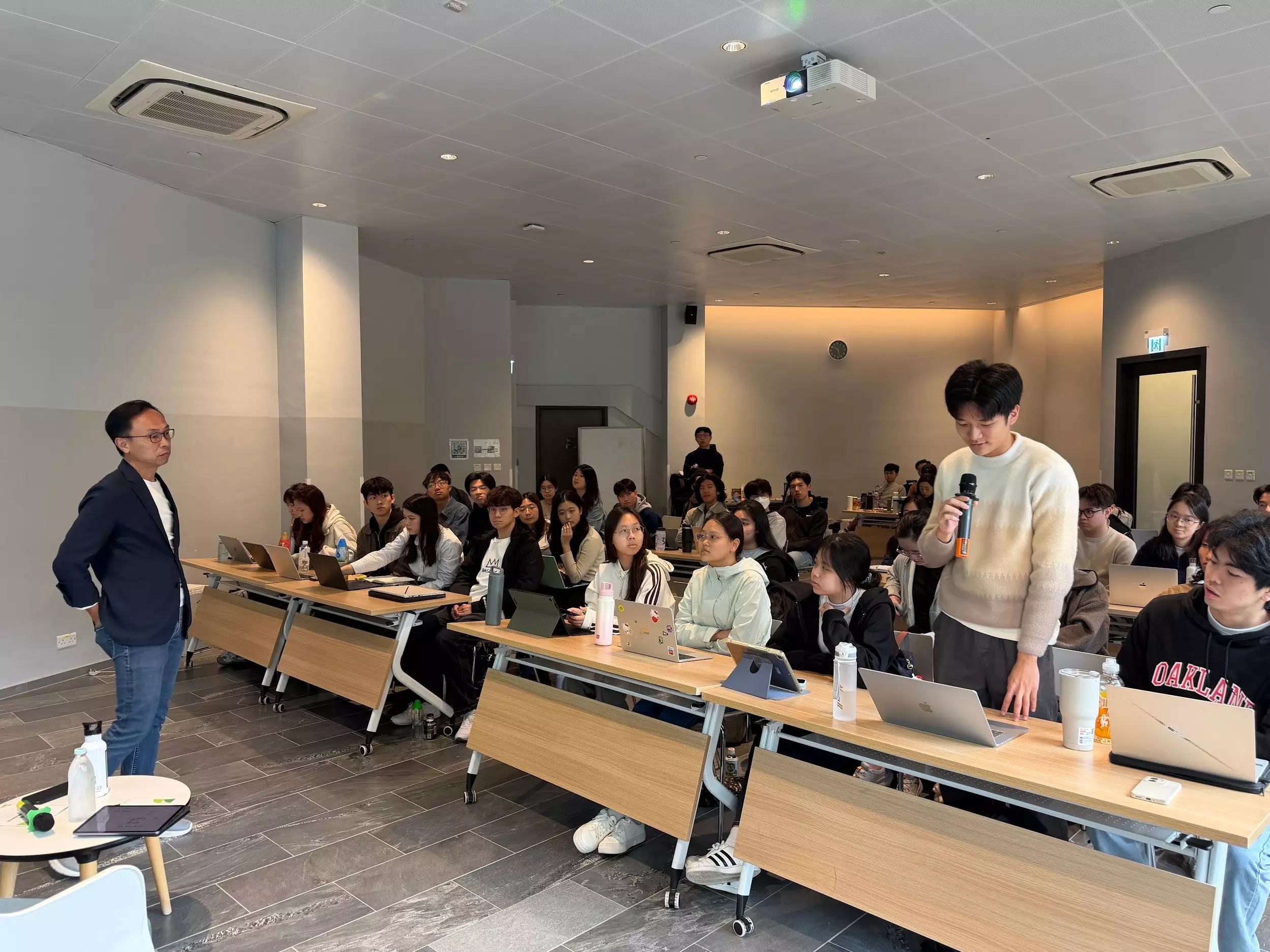 典禮儀式後,葉劉淑儀女士向學員分享其豐富的公共服務經驗。葉太回顧在政府部門、立法會及行政會議的工作歷程,以及創立匯賢智庫與新民黨的心得。她以實際經驗闡述如何在行政與立法角色間取得平衡,並就加速經濟發展、宣揚本地文化、發展基礎建設、深化國際往來等議題與學員深入交流。葉太勉勵學員積極探索公共事務的不同層面,發掘個人興趣,尋找適合自己的發展路向。
