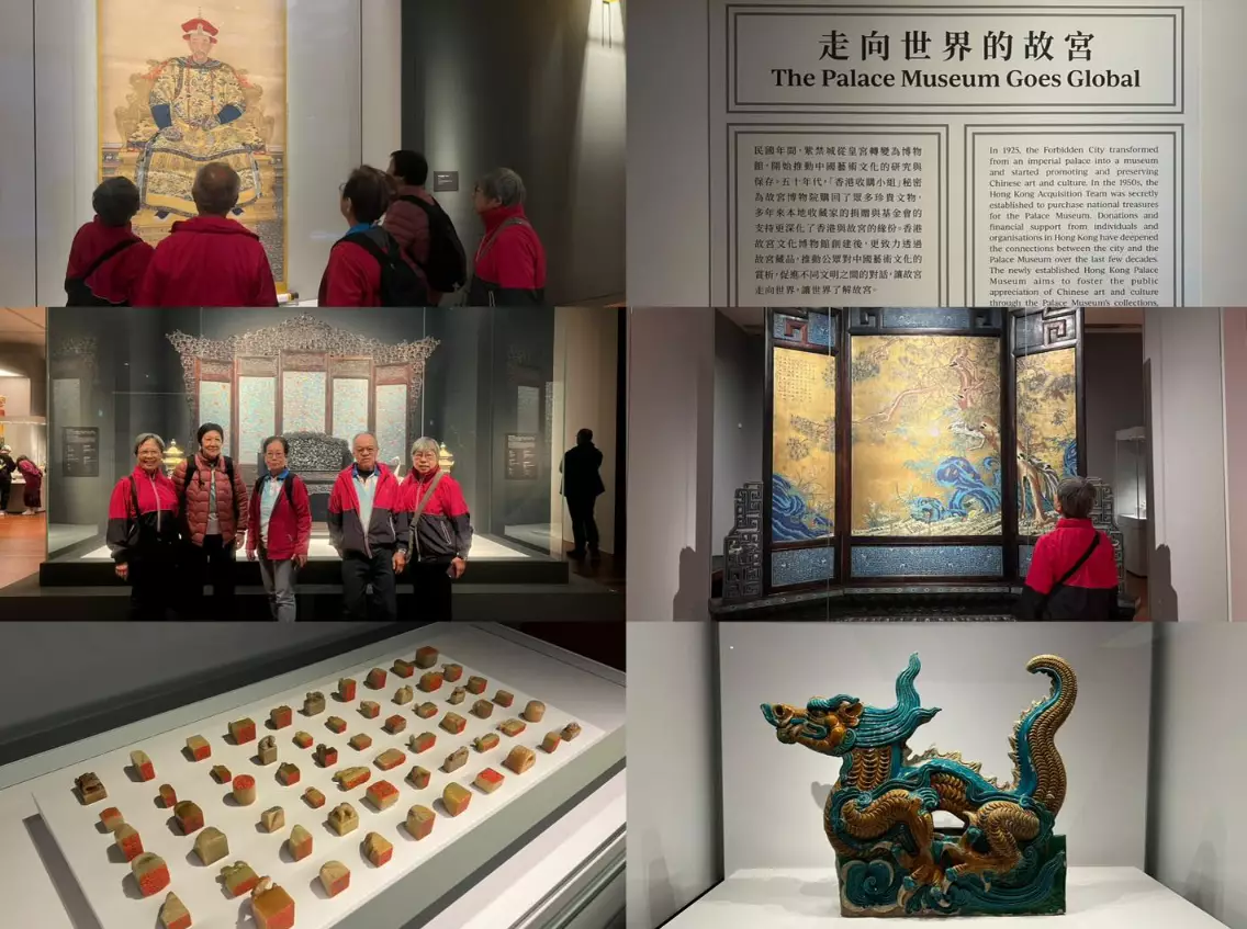 昨日(2月9日)中區耆樂警訊舉辦了一個結合歷史文化及國家安全教育的深度遊,帶領一眾會員分別到訪故宮文化博物館、歷史博物館及國家安全展覽廳,大家在故宮文化博物館認識到故宮文化的傳承、紫禁城中的家具、珍藏的陶瓷品、當代設計融入古代工藝、歷代皇帝皇后的畫像及一些香港收藏史,更難得可以參觀特別展覽古埃及文明大展,觀賞到木乃伊面具、與古希臘及羅馬風格融合的藝術品,探索古埃及與世界文明的交流。