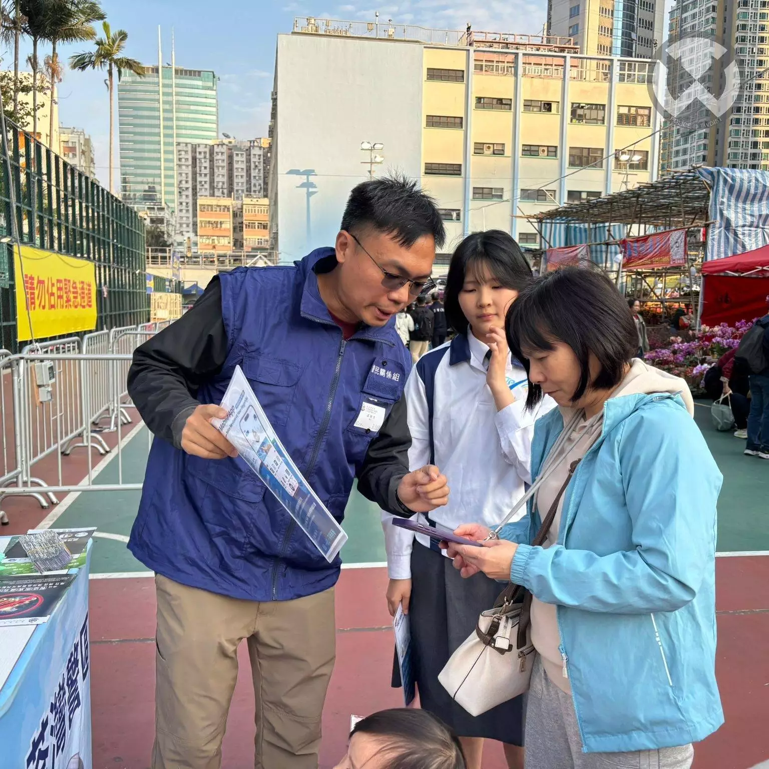 連結已複製! 今日2月12日(年廿五)荃灣警區警民關係組人員聯同一班荃灣區少年警訊來到荃灣沙咀道遊樂場的荃灣年宵花市,向市民傳遞防罪、防騙及禁毒信息! 農曆新年前夕,大力推廣防騙意識,提醒大家要時刻保持警覺,提防層出不窮嘅騙案,保護好自己同屋企人嘅財產。另外, 毒品一啖都唔好試,一失足成千古恨,遠離毒品至係贏家! 提提大家,記住幫親友下載埋: 「防騙視伏器」APP ── 幫你一眼睇穿可疑來電、連結; 「香港警察流動應用程式」 ── 一站式使用警隊服務,隨時隨地與警方同行。