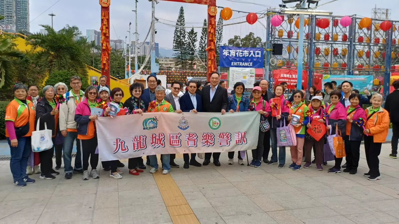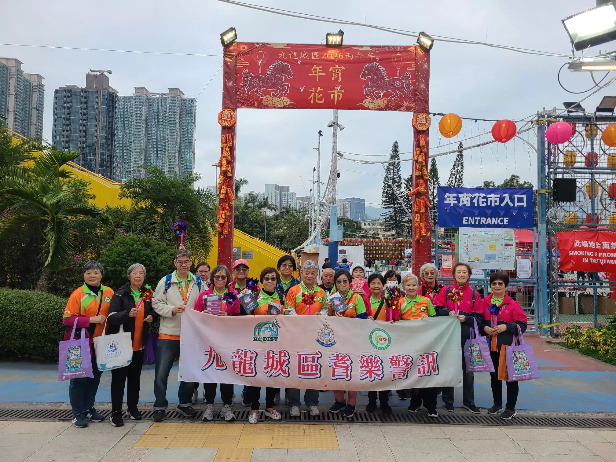 2026年2月12日,九龍城警區指揮官陳少鳴總警司、九龍城區耆樂警訊名譽會長會主席陳婉儀女士、副主席鍾子權先生MH和名譽會長譚綺雯女士,帶領九龍城區耆樂警訊一班老友記嚟到土瓜灣遊樂場年宵市場進行防騙防罪宣傳活動,向攤檔及市民派發宣傳單張,提醒嚟行年宵嘅市民,要小心保管財物,提防扒手,更要提防電話騙案,時刻保持警覺,避免賊人有機可乘,以免招致損失。