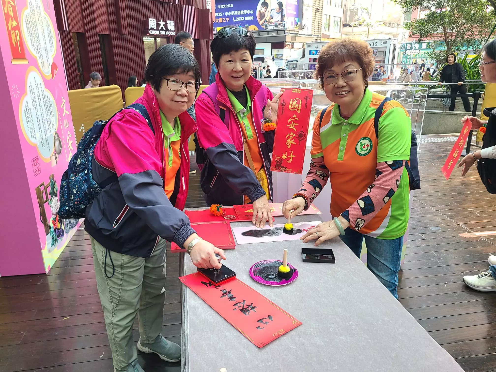 連結已複製! 九龍城區耆樂警訊一班老友記分別於2026年2月13日和15日,兩日嚟到尖沙咀K11 Art Mall露天廣場,參加新春國安藝聚嘅陶藝展和「拓福映彩」拓印揮春 及「吉祥如意」扭扭棒賀年桔 工作坊。 透過陶藝作品和非遺文化,認識文化、生態和糧食安全,弘揚中華文化,加強國家安全意識。 活動中,老友記親手用扭扭棒製作出一個個大桔 的新年掛飾,和拓印揮春,寓意新年大吉大利並將福帶回家中送給親人,為新年增添喜慶,別具意義!