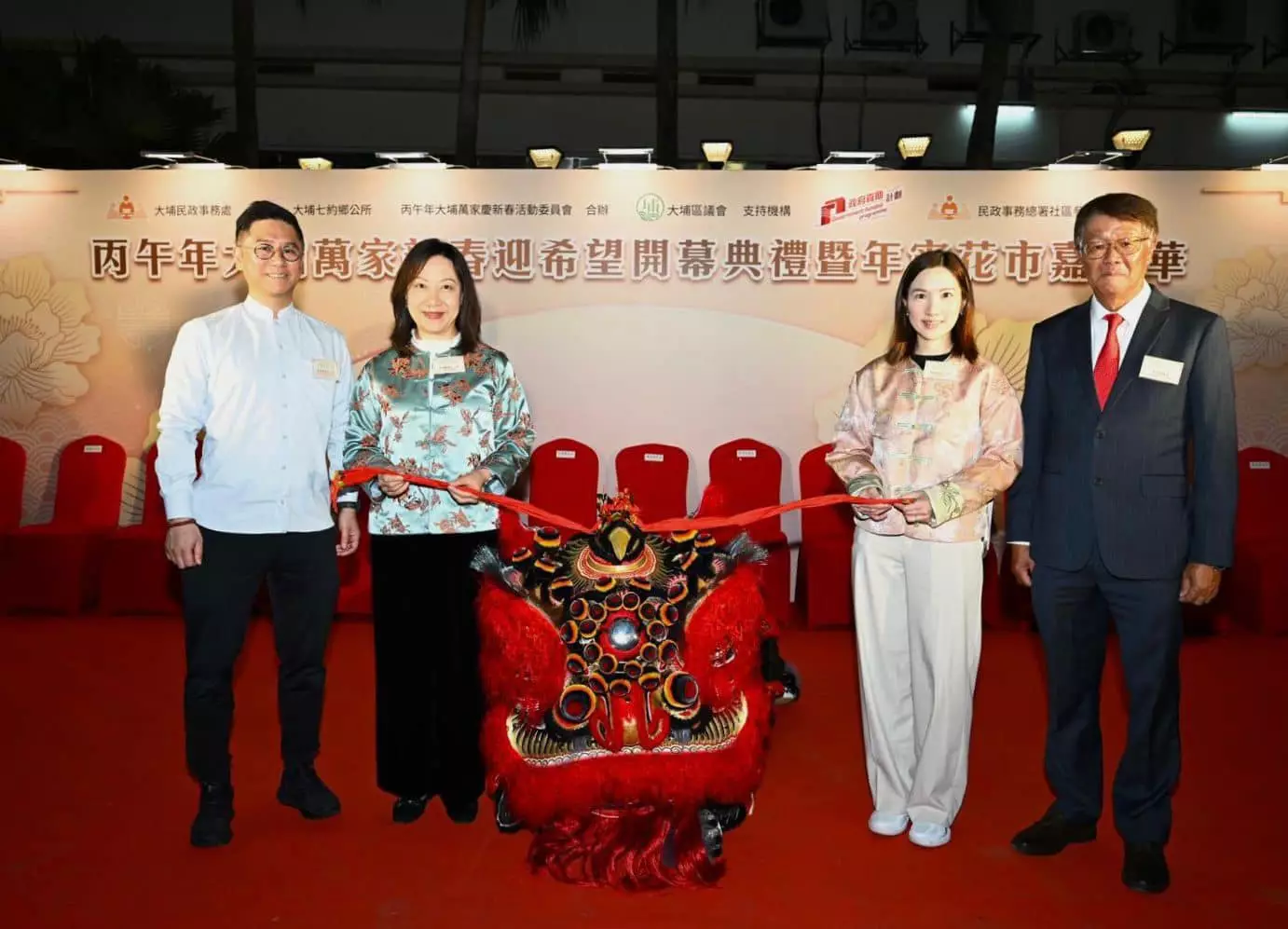 近日,民政總署署長杜潔麗蒞臨大埔天后宮風水廣場,擔任「丙午年大埔萬家新春迎希望開幕典禮暨年宵花市嘉年華」主禮嘉賓,為一連串新春活動揭開序幕!