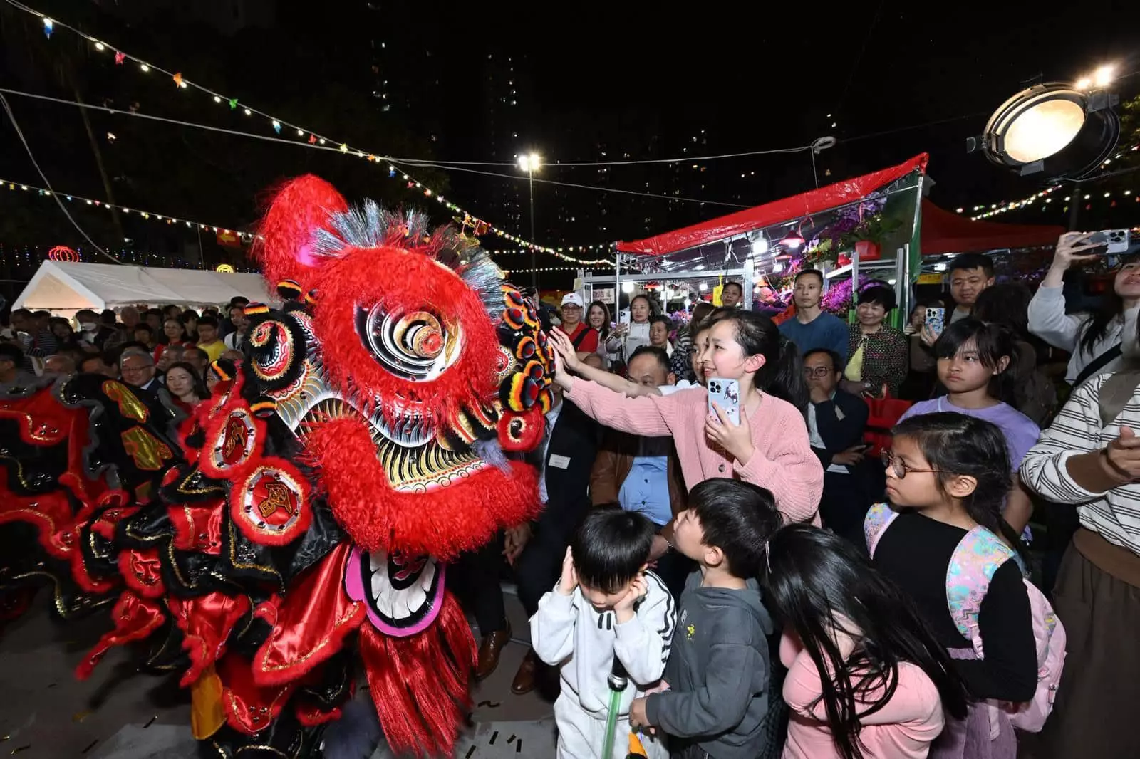 現場人山人海,場面熱鬧,有醒獅點睛儀式、舞獅表演、歌手獻唱經典金曲、男團女團跳舞、花式足球同雜耍表演等精彩節目,大家睇到眼都唔眨!現場仲有一班老友記寫揮春,將新年祝福傳遍萬家。