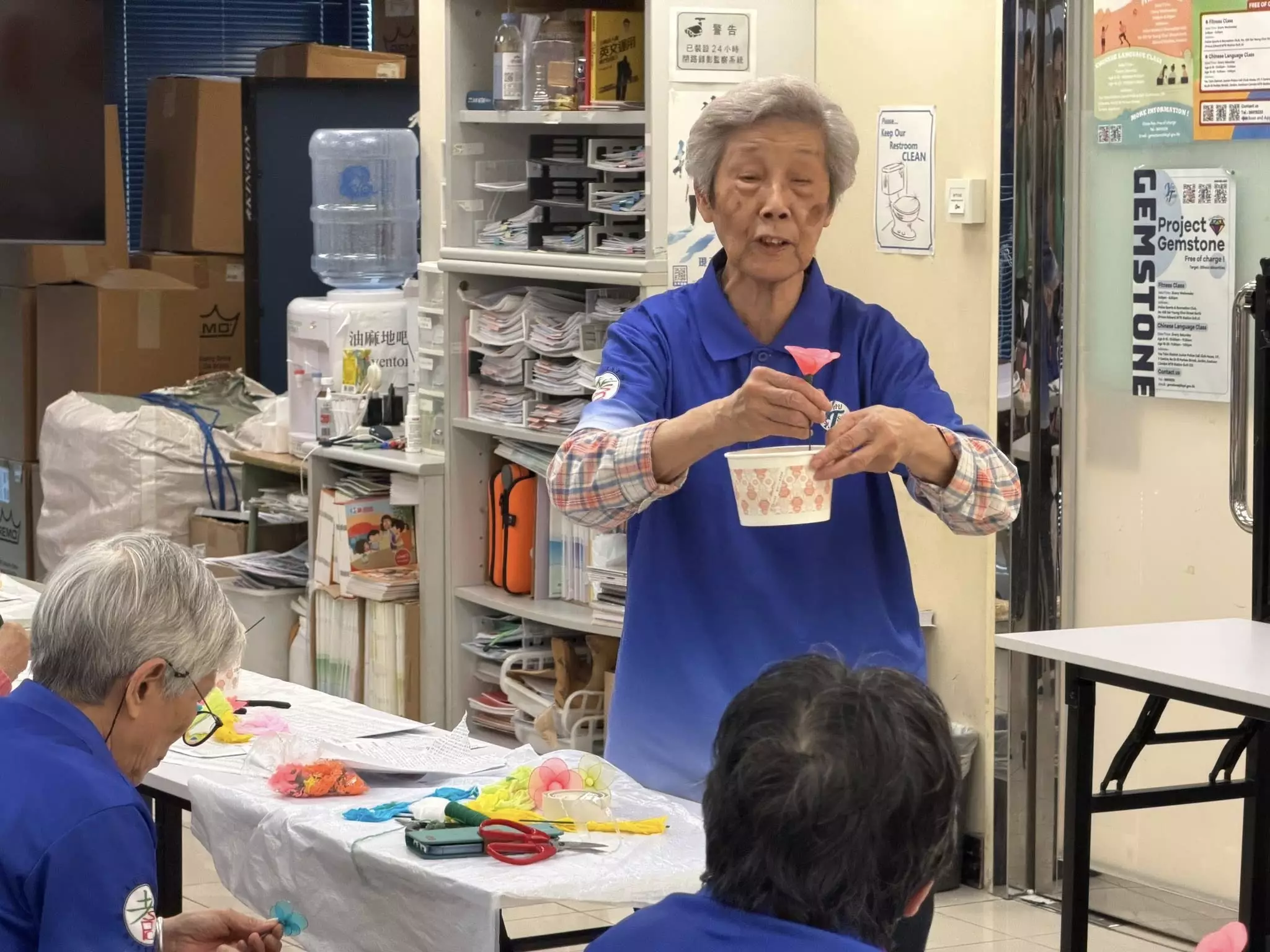 連結已複製! 耆樂警訊會員透過學習絲網花製作,可以提升自身協調能力,用眼看、用耳聽,用手做,可訓練長者的手腦協調及提升其專注力。 絲網花製作是一門講求耐性、專注的活動,而且課堂所用的物料是循環再用的環保物料,只需要搜集一些舊塑膠水樽、舊報紙,再加上由導師提供的材料,就可以化腐朽為神奇,製作出一盆盆精美的花朵。 每期絲網花均有不同的主題,例如蘭花、康乃馨等。 每個同學的作品都別出心裁。