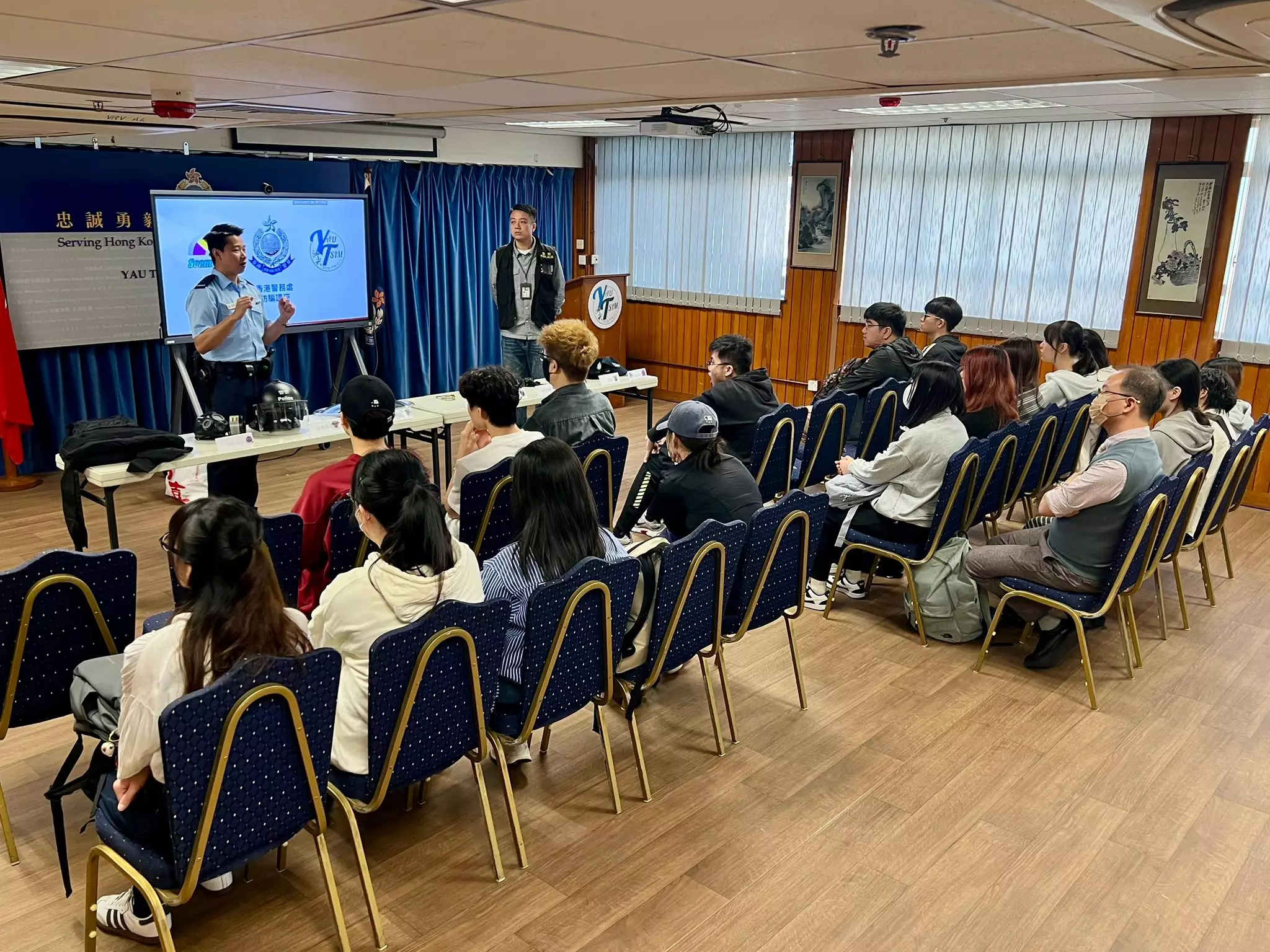 連結已複製! 2月25日,香港都會大學李嘉誠專業進修學院的學生們到尖沙咀警署參觀。 油尖區警民關係組人員向同學們講解防罪資訊及推廣防騙視伏器,令他們了解到最新的騙案手法及防騙資訊。同學們都十分留心聆聽人員介紹警察日常工作與警用裝備,而且更親身試穿警察裝備,例如防彈背心、圓盾及防暴頭盔等等。 是次參觀除了提升同學們的守法意識,亦加深同學們對警務工作的認知及興趣!