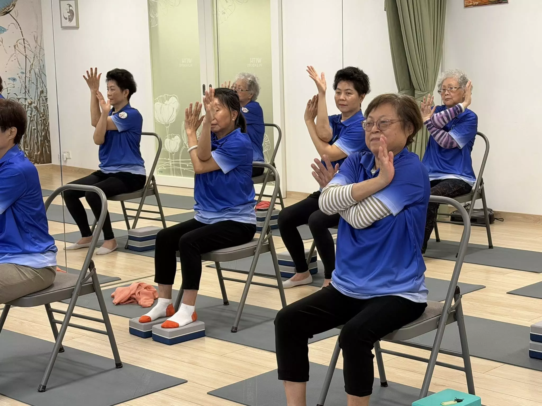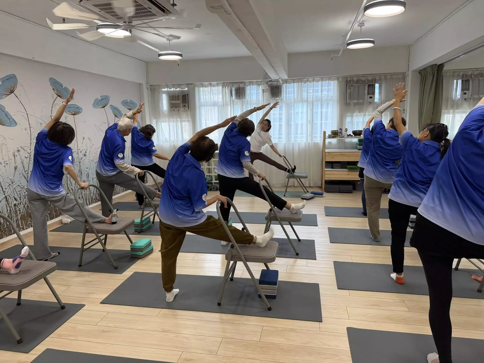 耆樂警訊會員參與由油尖區康樂體育會主辦,在「瑜樂伽教室(Sliver Yoga) 」進行的椅子瑜伽班及活力 瑜伽班。
