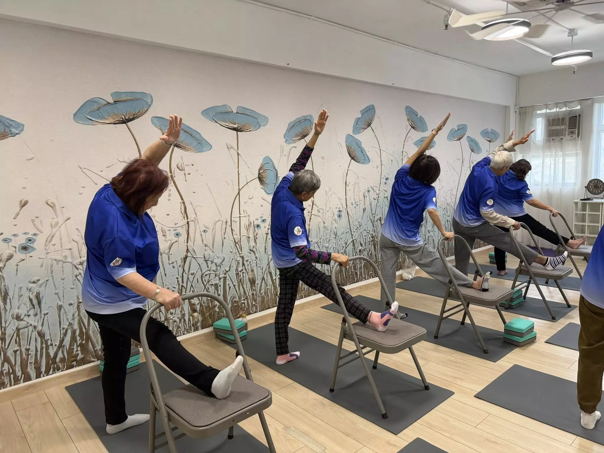 「椅子瑜伽」是坐在椅子做動作,對於一些有膝患或膝蓋曾經做過手術的長者較為適合;而「活力瑜伽」則適合許多長者。