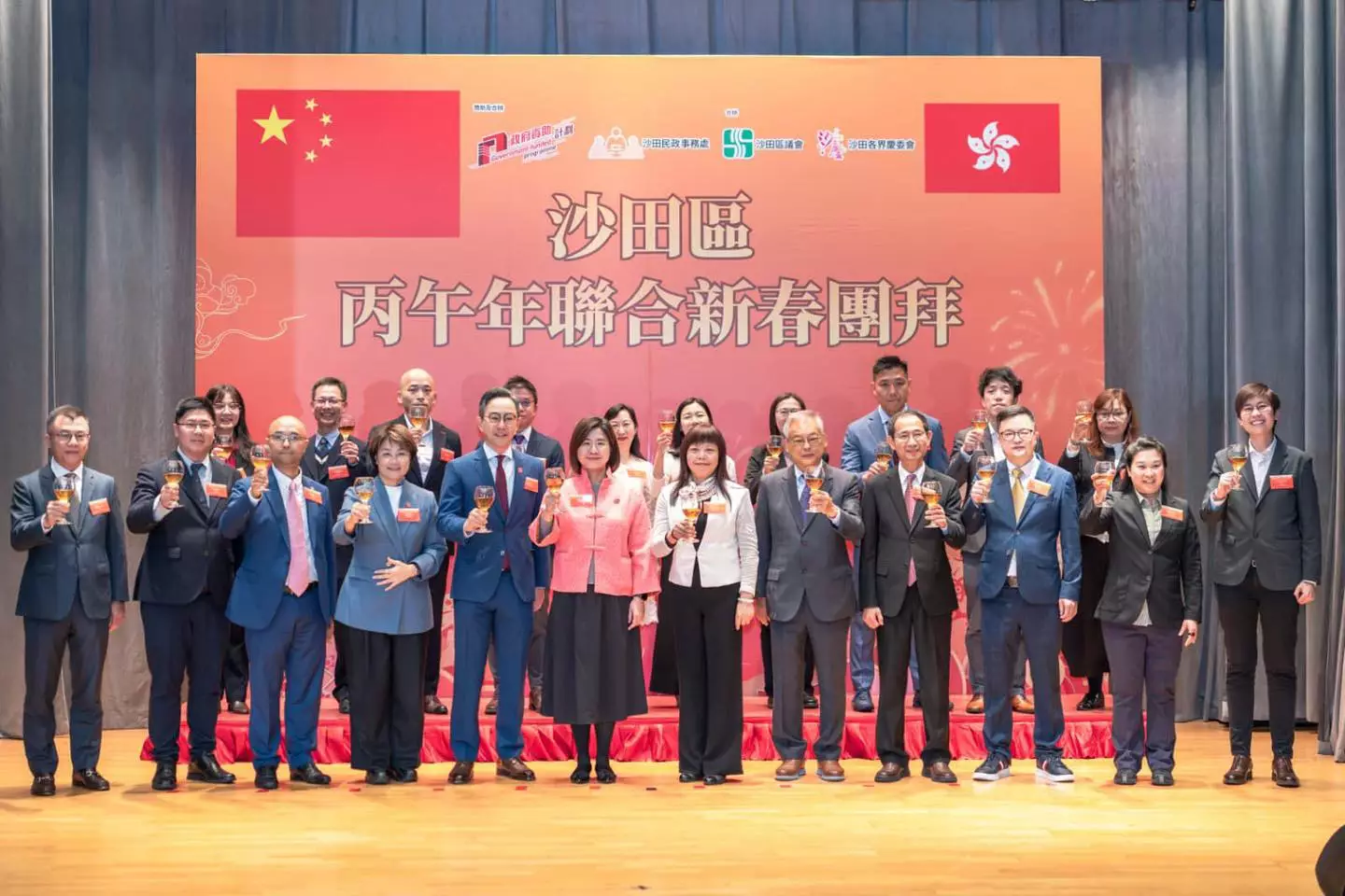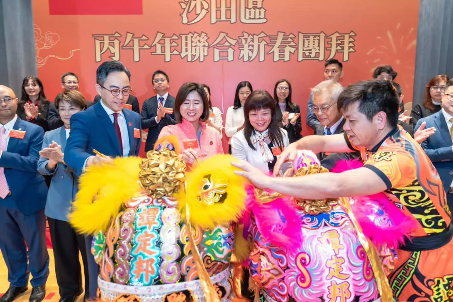 連結已複製! 由沙田民政處、沙田區議會及沙田各界慶委會合辦嘅「沙田區丙午年聯合新春團拜」昨日(27/2)圓滿舉行。民政總署副署長王婉蓉、中聯辦新界工作部副部長朱宜華、沙田民政專員余懷誠及沙田各界慶委會主席莫錦貴擔任主禮嘉賓,主持點睛、簪花掛紅、切金豬及祝酒儀式,並與區內各界人士及政府部門代表聚首一堂,共慶新春,為沙田區市民送上新年祝福。 展望馬年,沙田民政處將以堅毅進取嘅精神,繼續秉持「民政幫到你」嘅宗旨,深化與各政府部門及社區各界嘅協作,齊心推動社區建設,讓沙田成為更和諧穩定、更富活力嘅地區。 祝願沙田社區馬年同心同德、團結和諧;沙田區居民新一年馬到功成、心想事成、身體健康,生活幸福美滿!