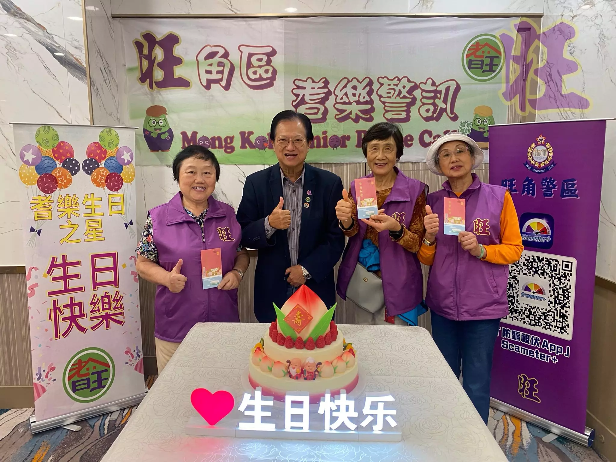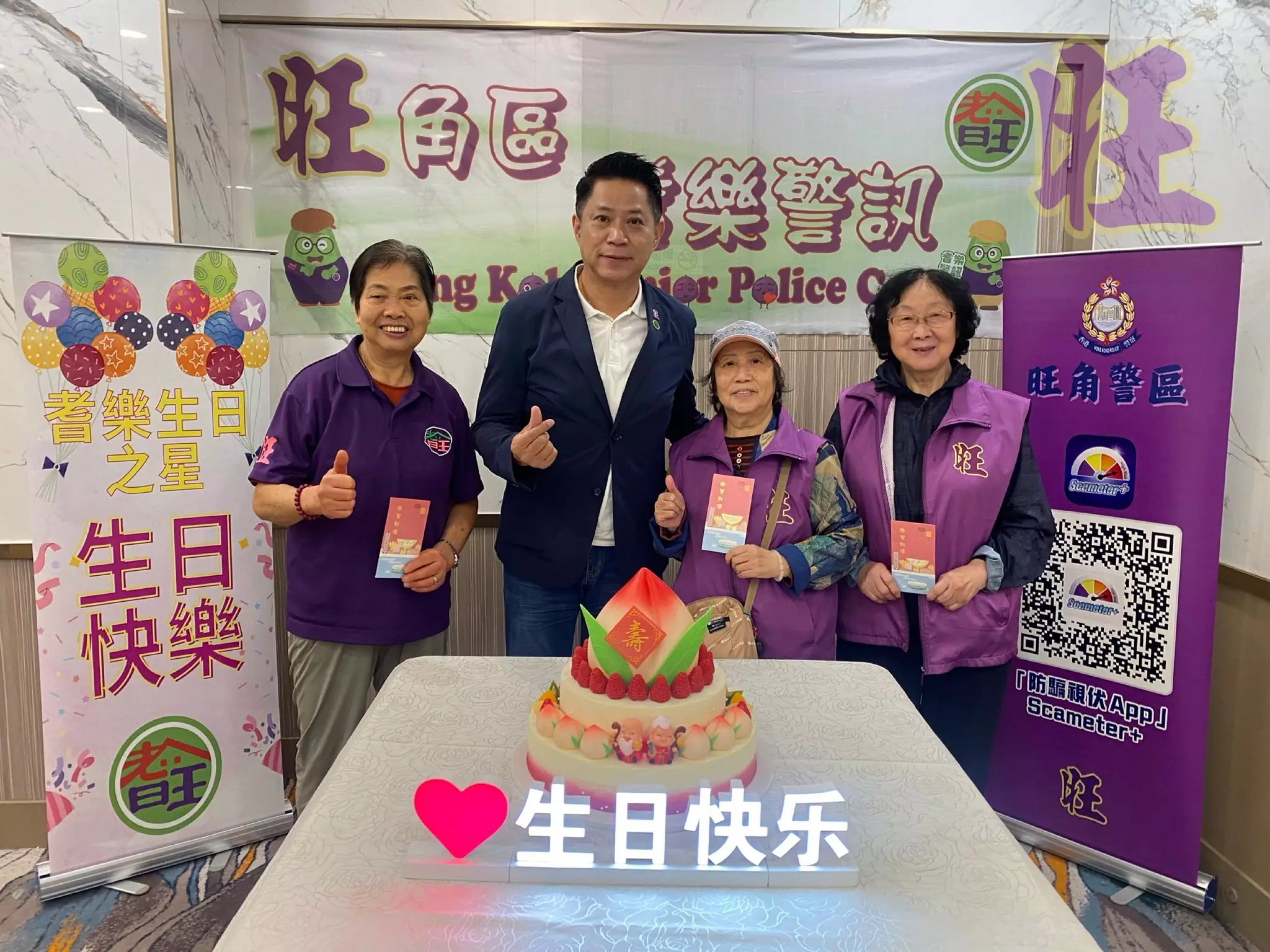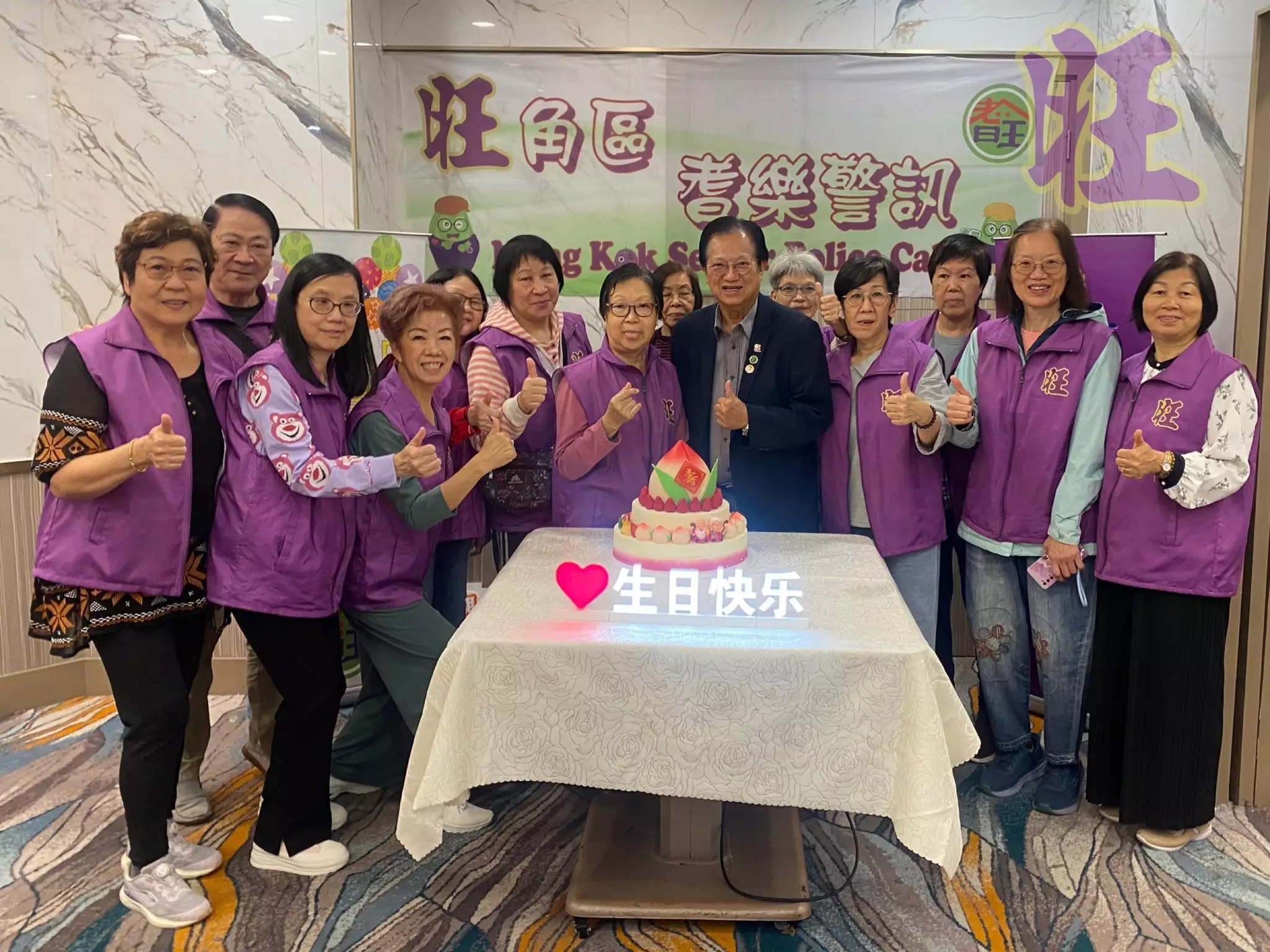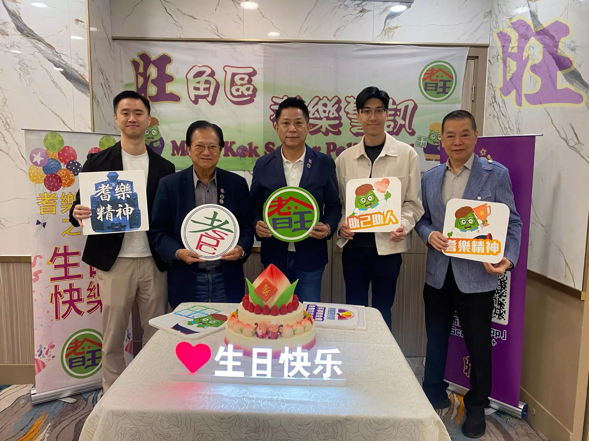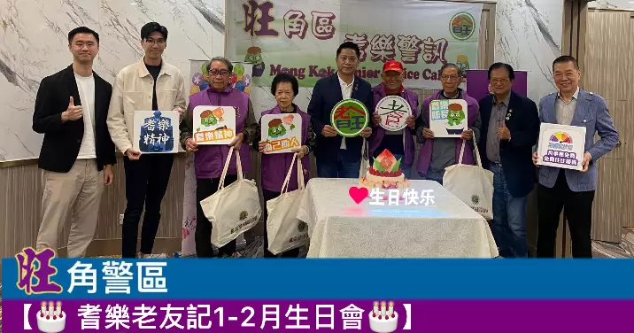 昨日好榮幸邀請到旺角區耆樂警訊名譽會長會主席王子成先生MH、會長侯永昌先生BBS,MH、會長張梓賢先生、會長胡霆軒先生及名譽顧問甄懋強先生出席耆樂老友記1至2月份生日會,一齊為67位老友記們慶祝生日,場面溫馨熱鬧!
