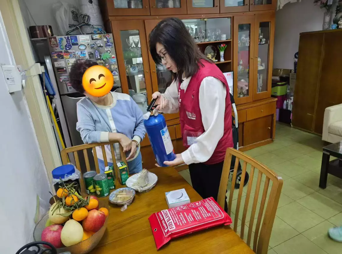 東區區議員李清霞與柏架山關愛隊隊長及一眾義工,近日走訪區內多位獨居及雙居長者,送上暖心關懷。團隊此行不僅為長者送贈滅火筒和滅火毯,更親手協助安裝煙霧感應器,從細節入手提升家居防火安全。