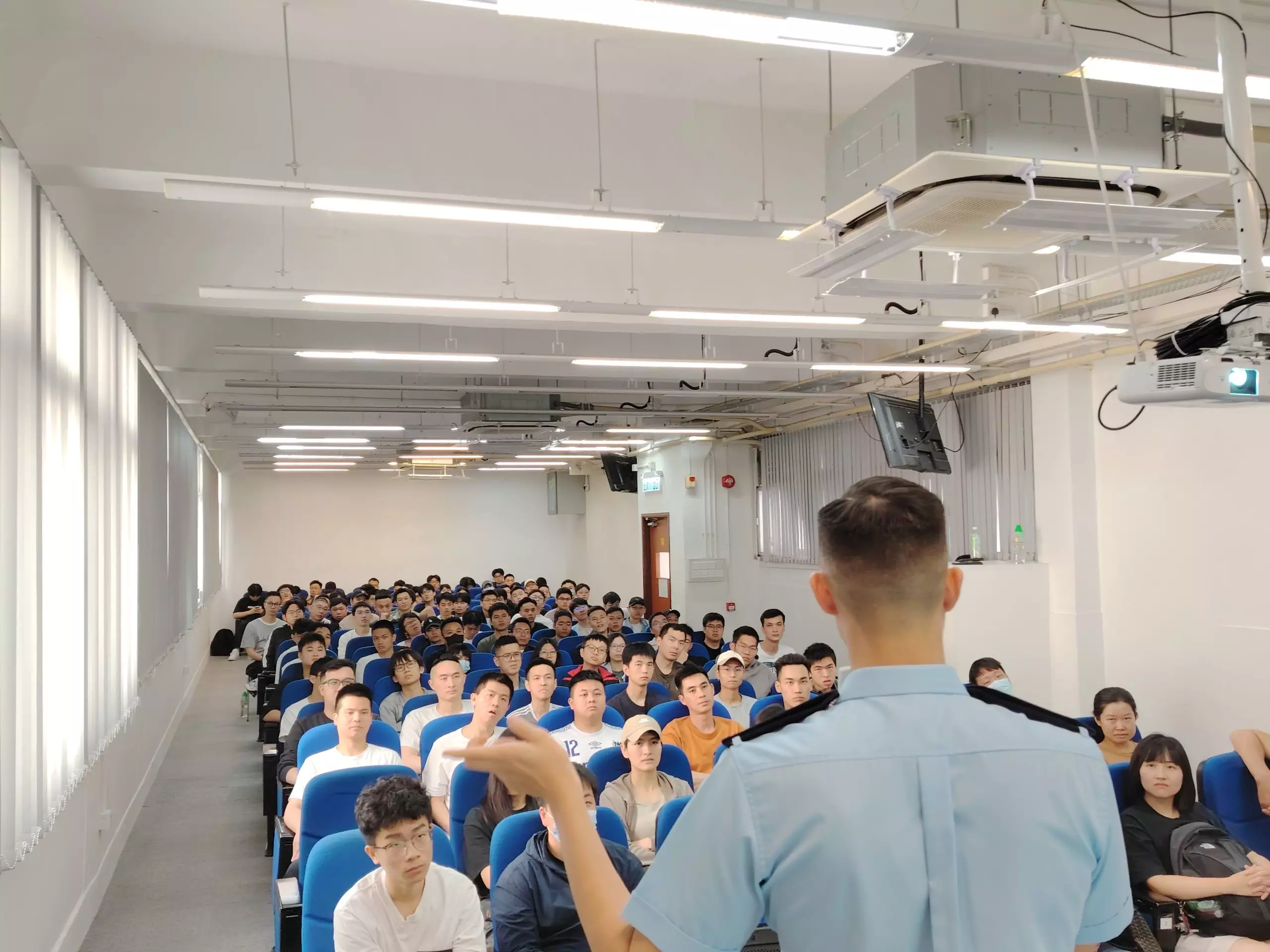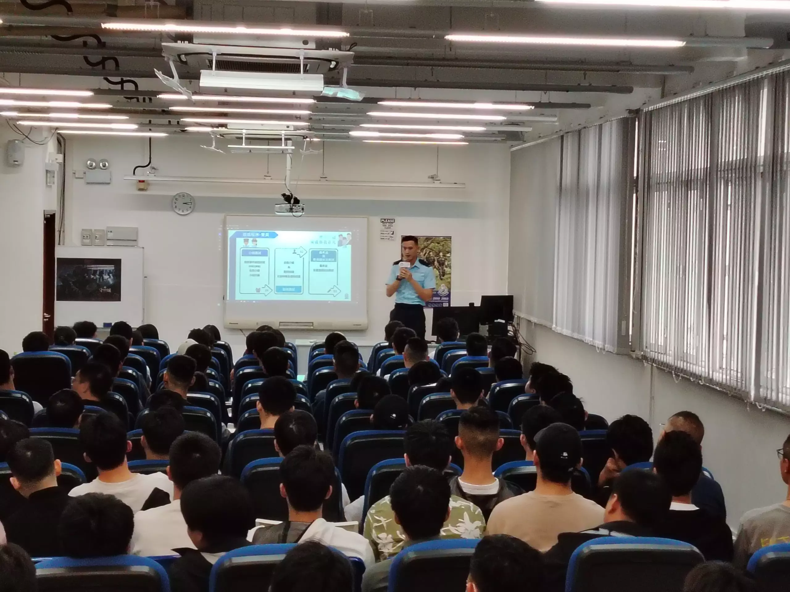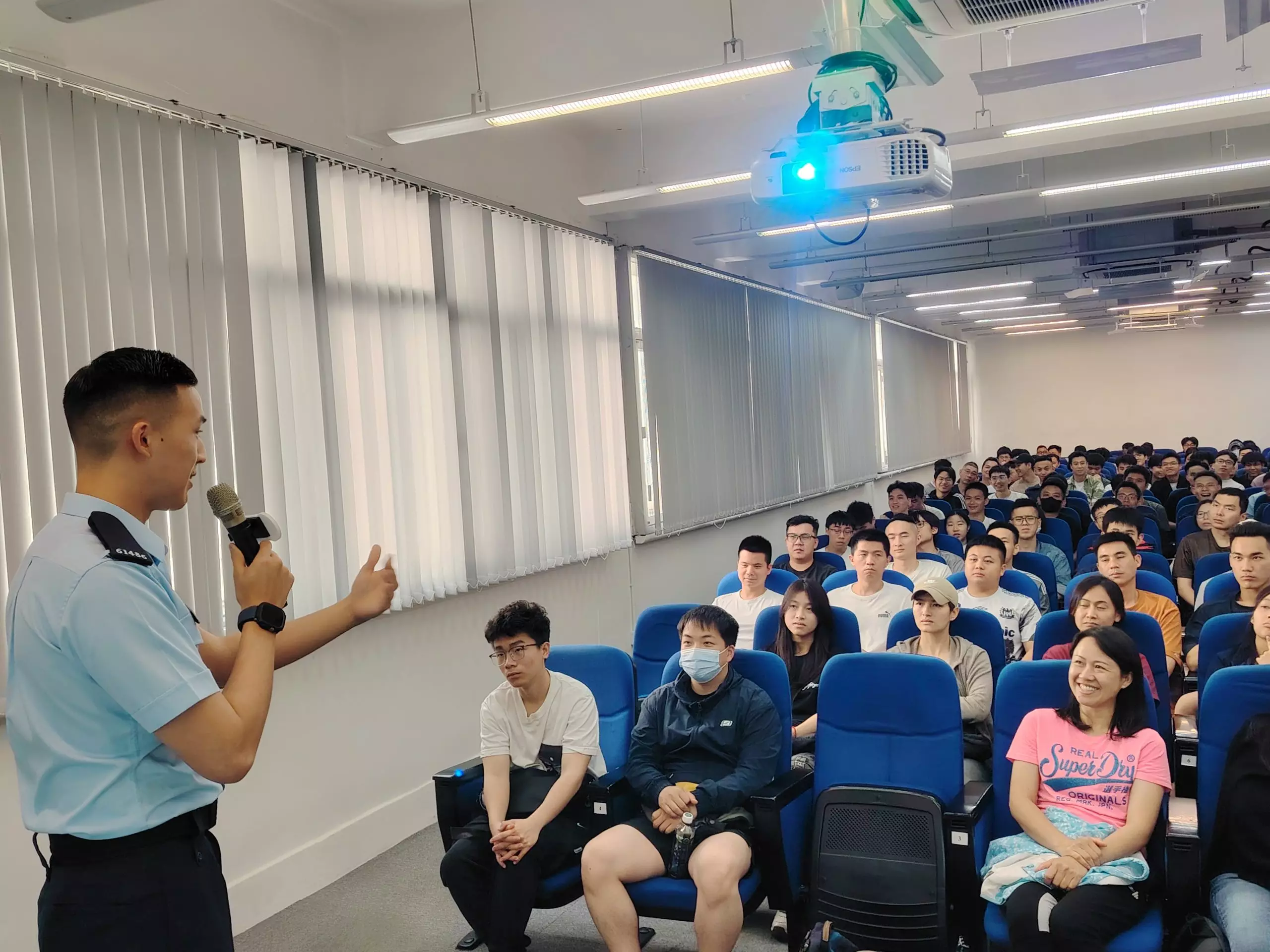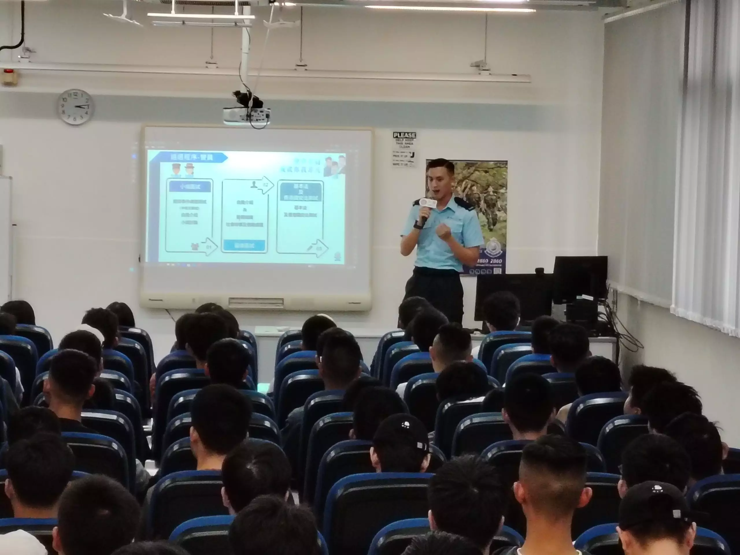 「亞賢」除咗分享咗由畢業到加入警隊嘅心路歷程,仲分享咗依家係紅磡分區軍裝巡邏小隊嘅工作點滴,佢嘅「#警察故事」令在場各同學深深感受到成為警察嘅使命感同責任。
