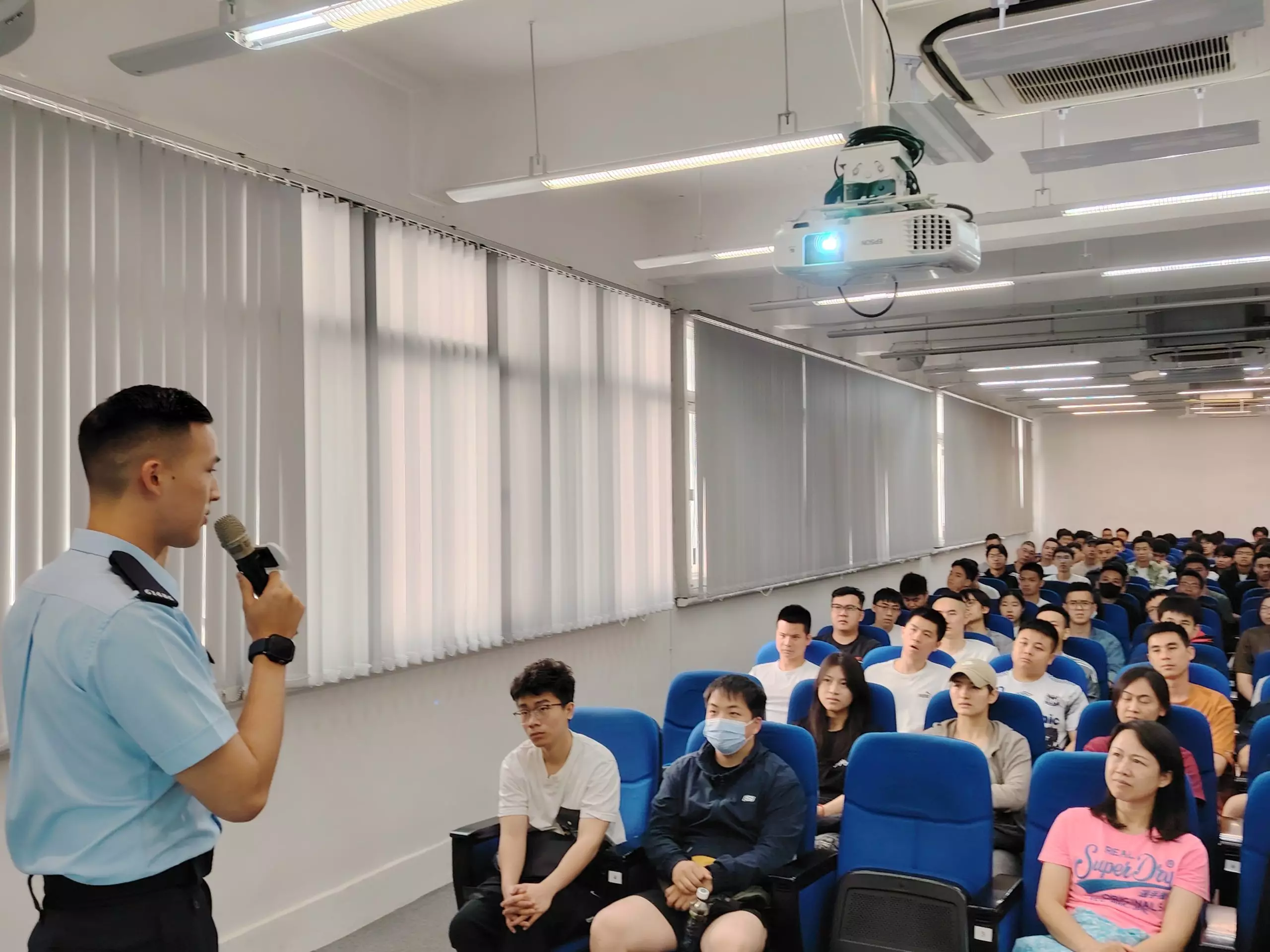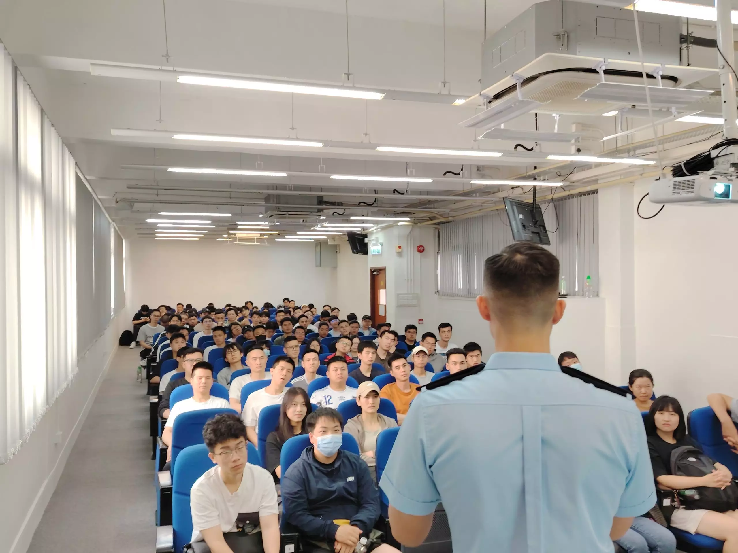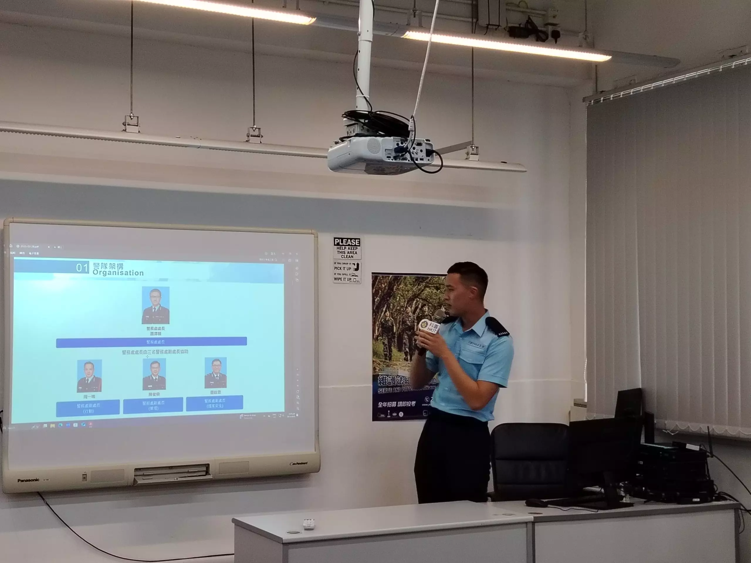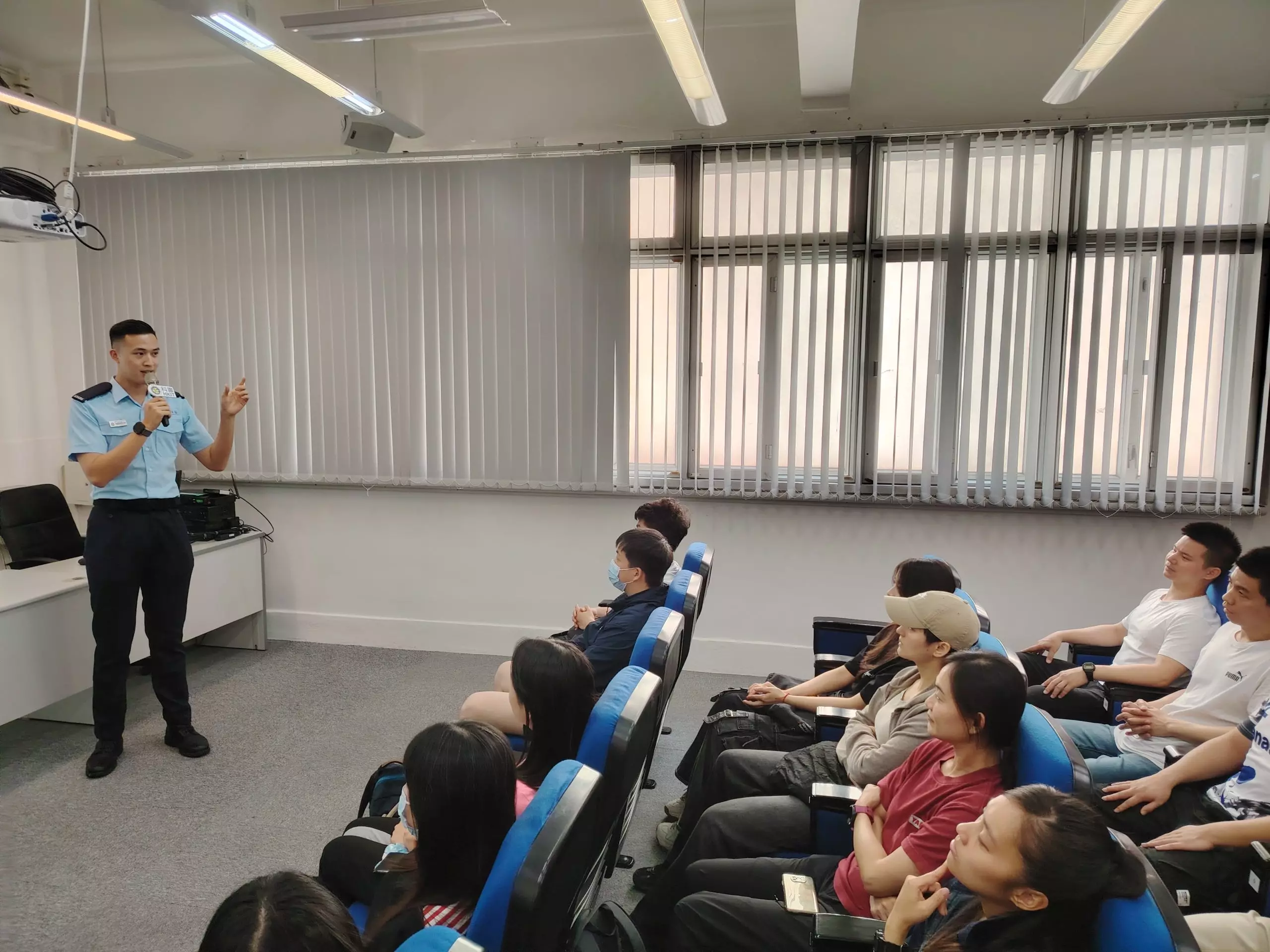 「亞賢」除咗分享咗由畢業到加入警隊嘅心路歷程,仲分享咗依家係紅磡分區軍裝巡邏小隊嘅工作點滴,佢嘅「#警察故事」令在場各同學深深感受到成為警察嘅使命感同責任。