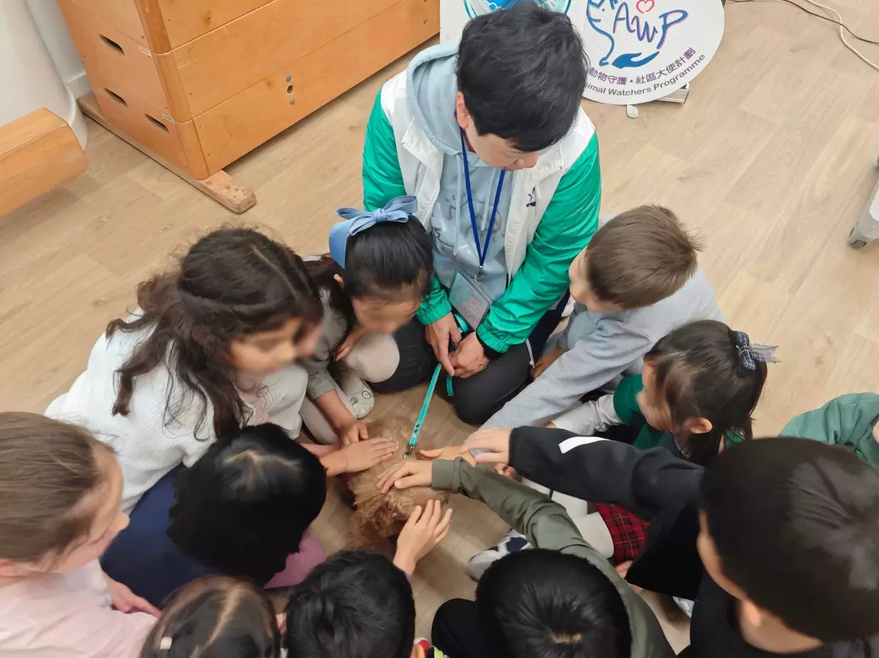 連結已複製! 今日(4/3),港島總區「動物守護 • 社區大使計劃」義工大使,連同三隻可愛義工犬:豆豆、蓉蓉、Choco,到南區德瑞國際學校(薄扶林校舍),與50位小朋友開展咗一場充滿愛心嘅守護動物講座! 活動除咗與小朋友分享守護及尊重動物之外,義工仲教導佢哋點樣同動物相處。最令小朋友興奮嘅,當然係可以近距離與狗狗接觸同傾計,明白尊重生命愛與責任的意義。