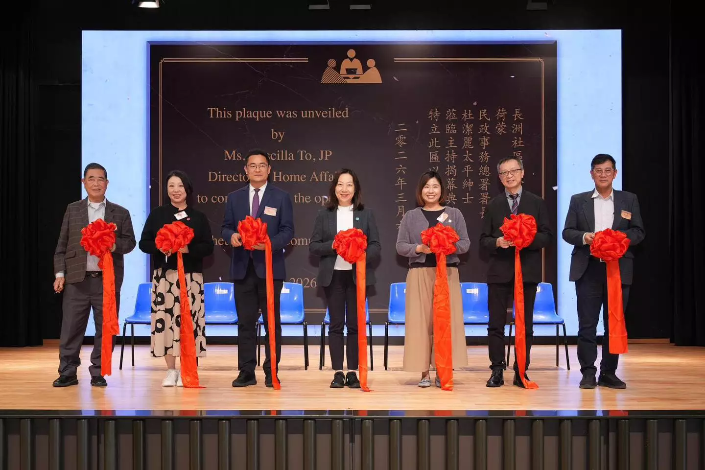 由離島民政處舉辦嘅長洲社區會堂開幕典禮昨日(6/3)圓滿舉行!民政總署署長杜潔麗、中聯辦新界工作部副部長孫學偉、民政總署副署長王婉蓉、離島民政專員楊蕙心、建築署助理署長鍾鳴昌、長洲太平清醮值理會主席暨長洲鄉事委員會顧問翁志明及長洲鄉事委員會主席吳文傑,與一眾離島地區領袖及社會賢達聚首一堂,共同見證社區發展嘅新里程!