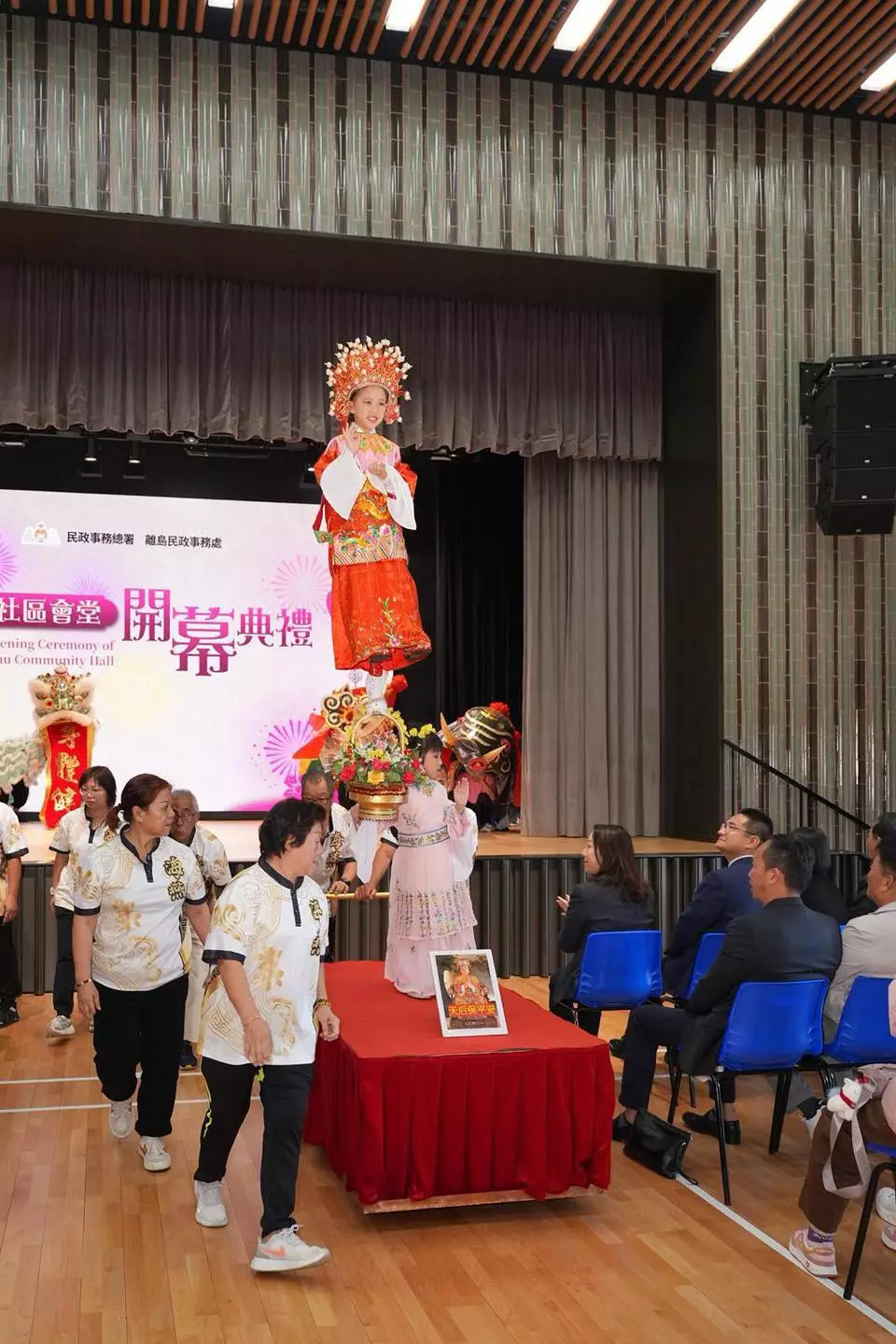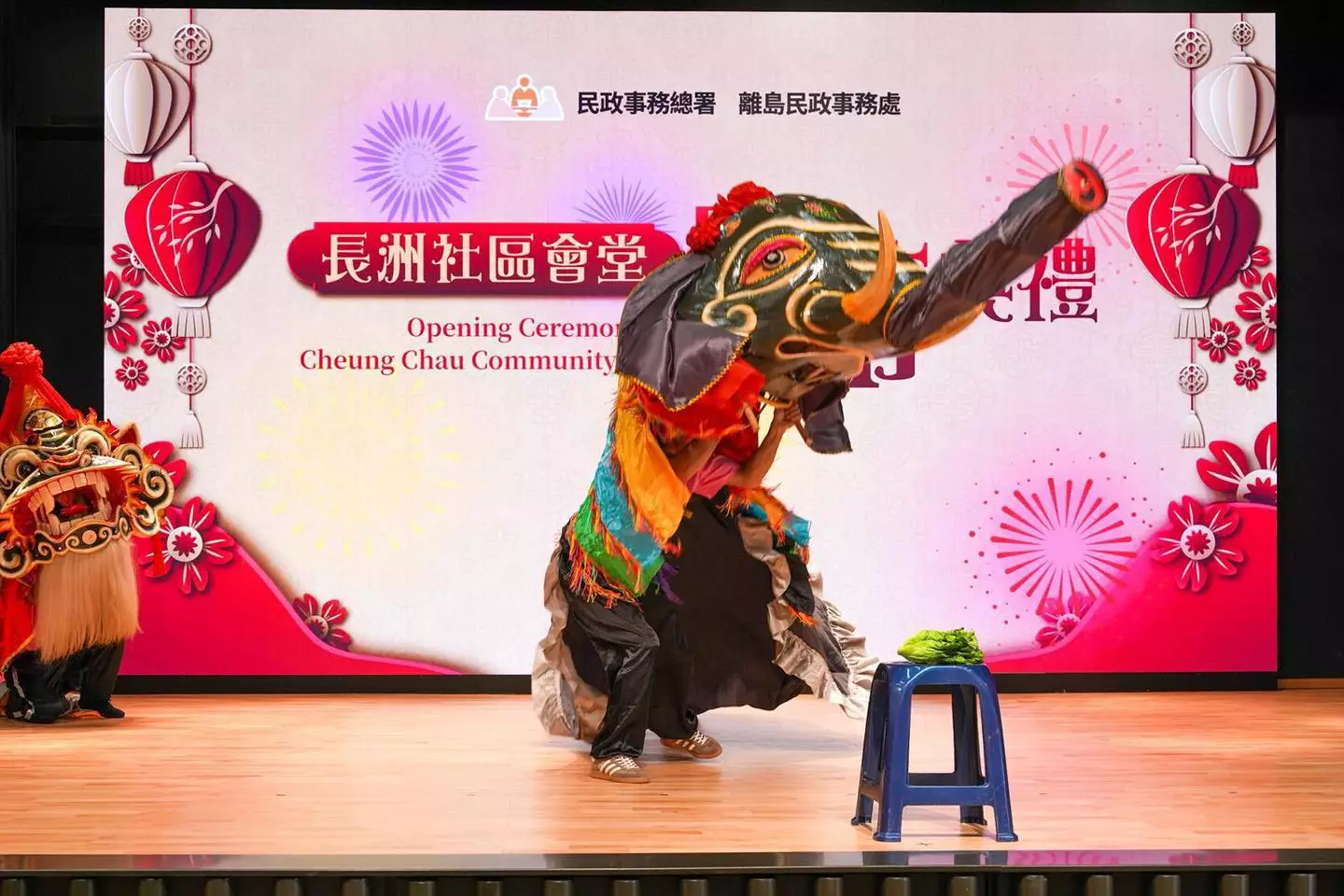 主禮嘉賓先進行剪綵同切金豬儀式,寓意新一年大家吉祥好運,離島區風調雨順。隨後,一眾嘉賓欣賞精湛嘅舞麒麟、舞大象同舞獅表演,鑼鼓聲中仲有長洲傳統特色嘅飄色巡遊,場面熱鬧,觀眾全程投入。祝願離島區百業興旺 ,社區欣欣向,居民安居樂業。