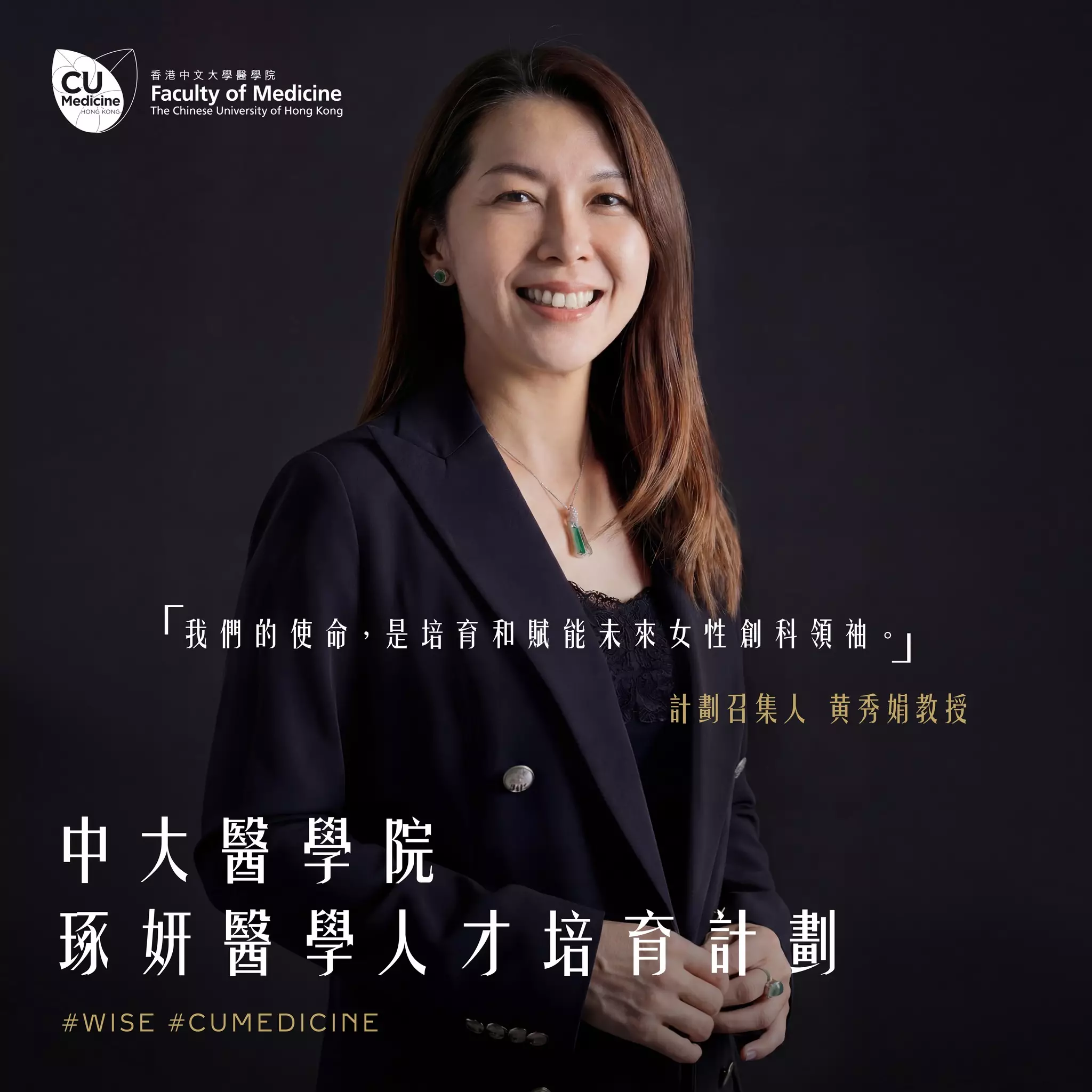 「琢妍醫學人才培育計劃」召集人及中大醫學院副院長(研究)黃秀娟教授表示:「我們致力將中大醫學院打造為賦能女性的先驅,讓每位有志投身科學的女性都能清晰看到通往成為領袖的大道。」
