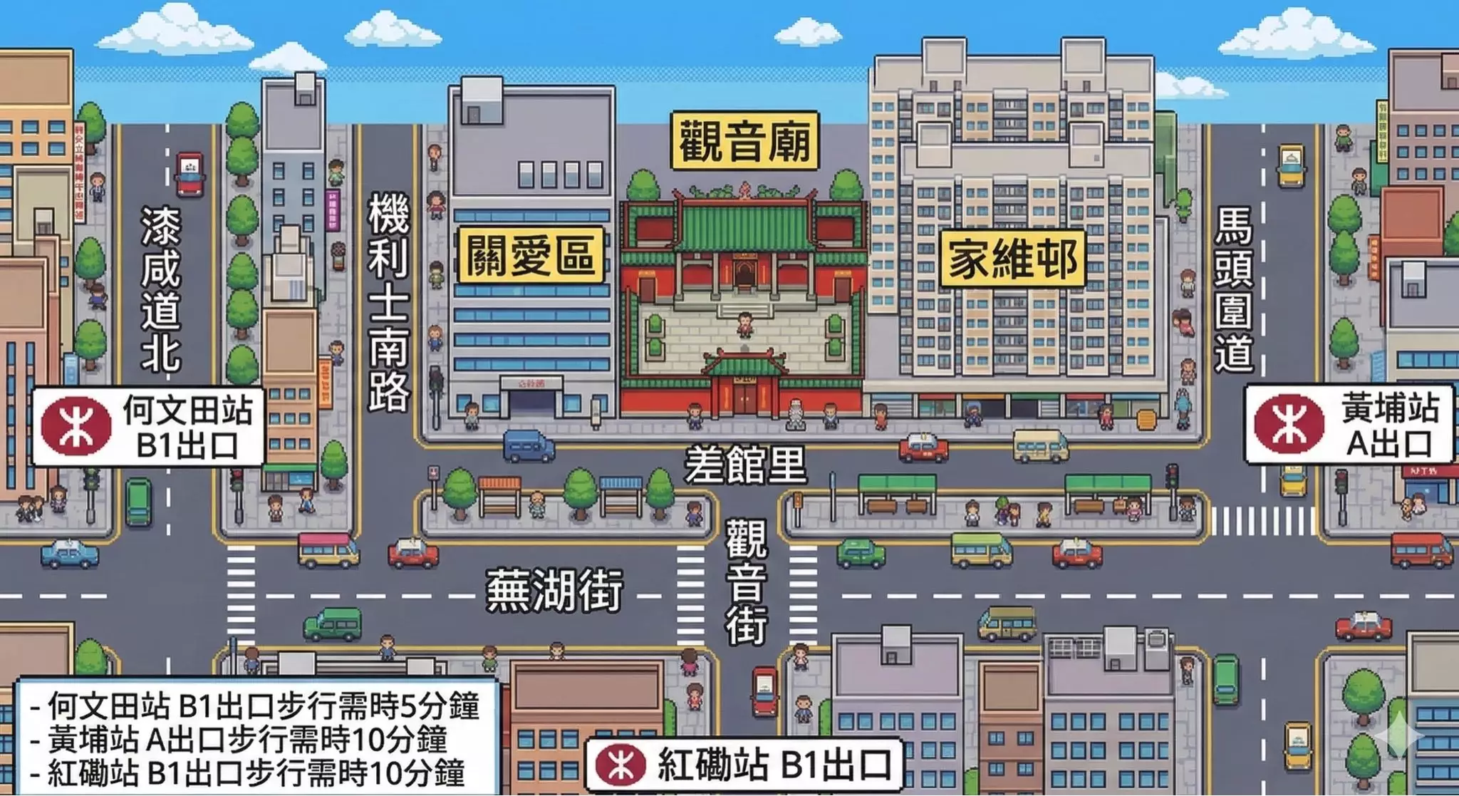 會於3月13日由下午四時開始直至活動結束,紅磡觀音廟附近會實施一連串臨時改道及封閉措施,包括: 差館里、獲嘉道、觀音街及平治街。駕駛人士請留意交通標誌及現場警方指示。