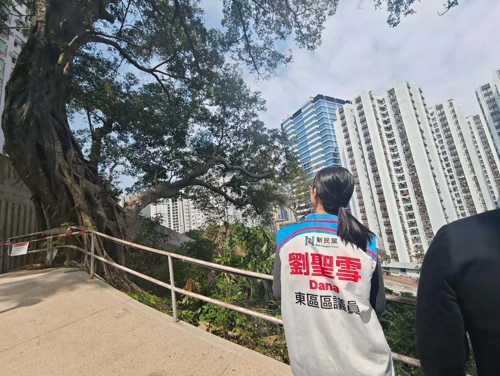近日,西灣臺居民就區內斜路一棵細葉榕的生長狀況及相關事宜向團隊反映,引發多方關注。東區區議員劉聖雪日前(3月9日)聯同居民代表、區議會同事,會同路政署園境師處及樹木辦代表,前往西灣臺斜路實地視察,詳細了解樹木情況並商討後續處置方案,力求在綠化環境、老樹保育與居民出行安全之間尋求平衡。