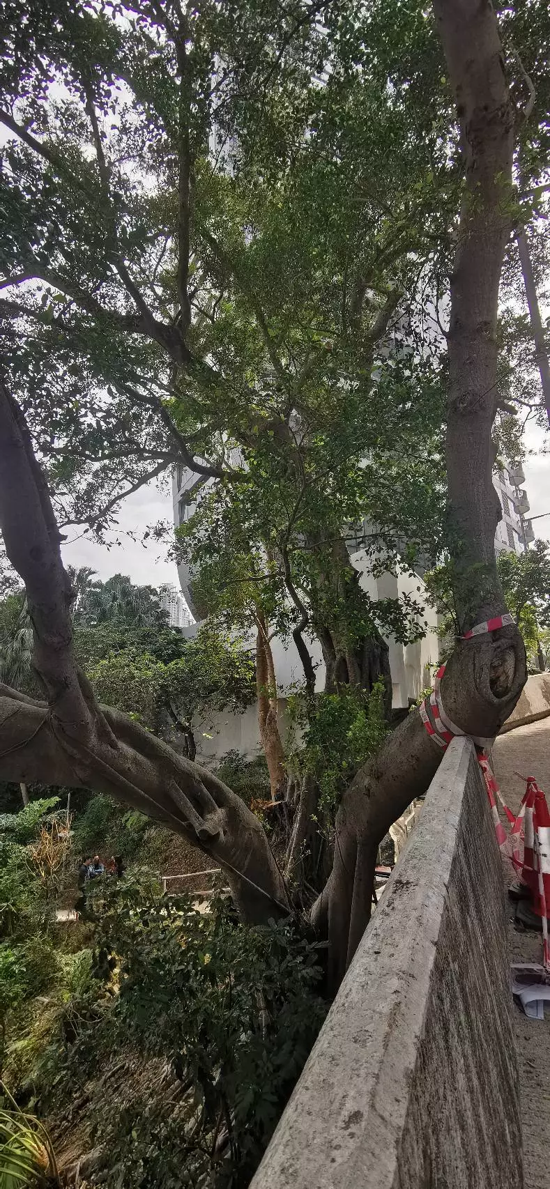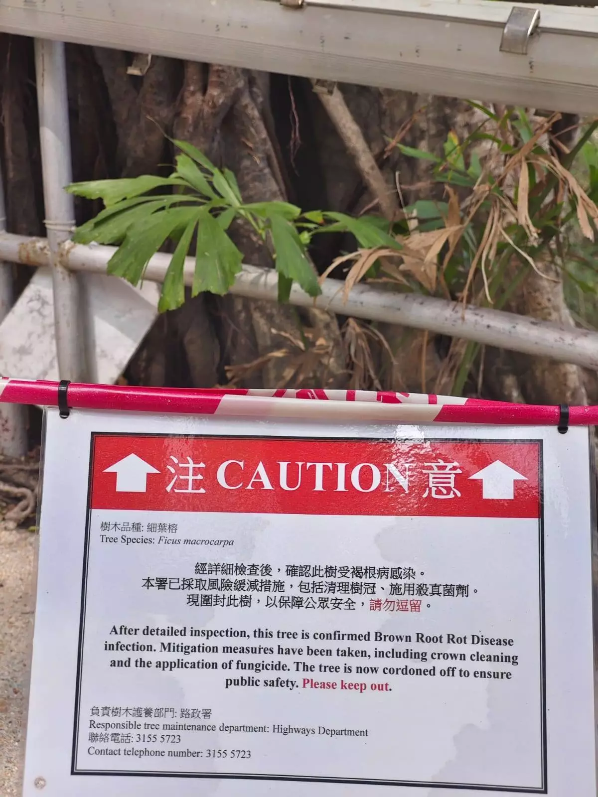 該棵細葉榕扎根西灣臺多年,當地居民均希望能盡量保留這棵老樹。經專業人員詳細檢驗確認,該榕樹已因泥土接觸感染褐根病,目前樹幹中間出現破洞,整體樹木結構極不穩定,存在隨時倒塌的安全隱患,恐危及西灣臺及逸意居一帶居民的出行安全。對此,路政署已即時採取風險緩減措施,包括清理樹冠、施用殺真菌劑,同時提醒途經該區域的居民,務必保持安全距離,謹防意外發生。