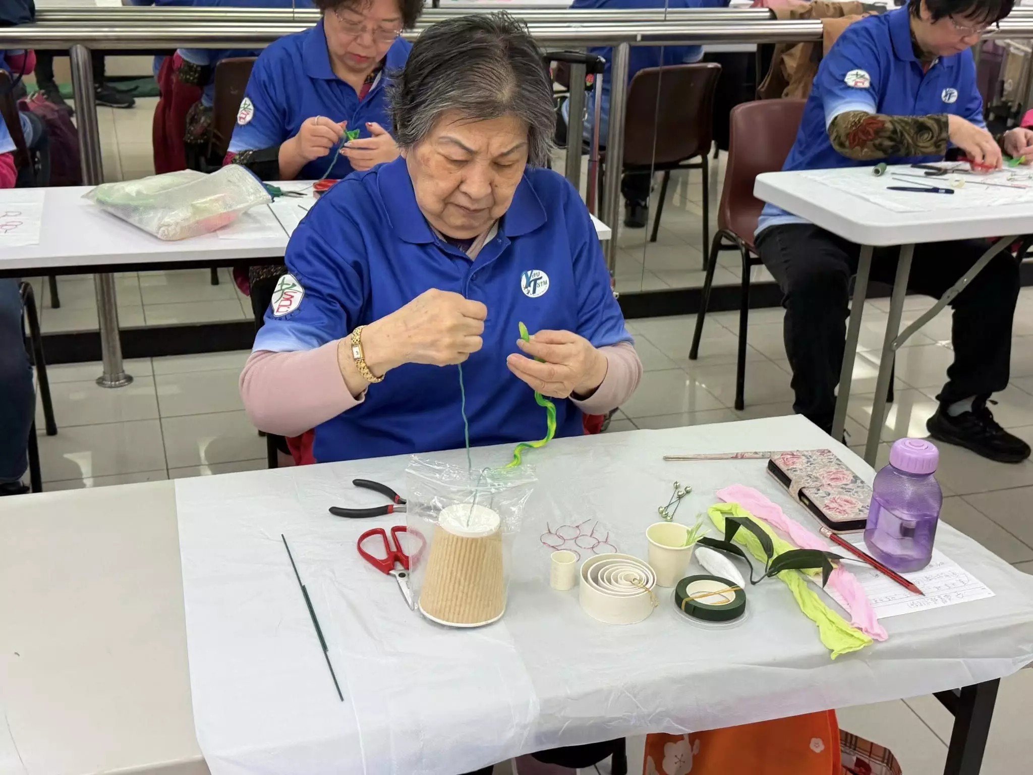 連結已複製! 耆樂警訊會員透過學習絲網花製作,可以提升自身協調能力,用眼看、用耳聽,用手做,可訓練長者的手腦協調及提升其專注力。 絲網花製作是一門講求耐性、專注的活動,而且課堂所用的物料是循環再用的環保物料,只需要搜集一些舊塑膠水樽、舊報紙,再加上由導師提供的材料,就可以化腐朽為神奇,製作出一盆盆精美的花朵。 每期絲網花均有不同的主題,例如蘭花、康乃馨等。 每個同學的作品都別出心裁。