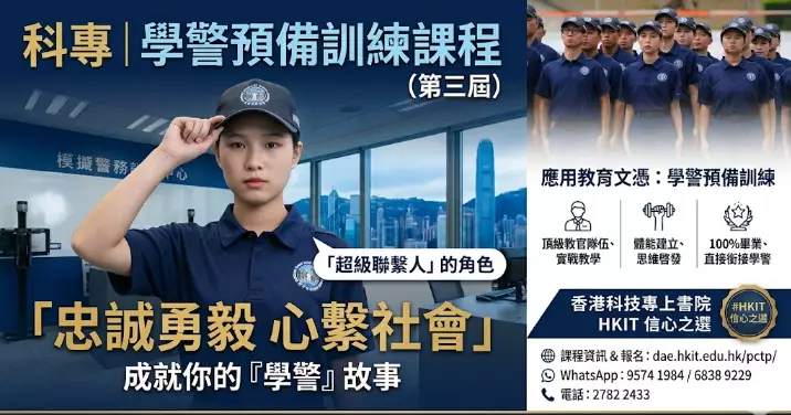歡迎大家報讀由 #香港科技專上書院(科專HKIT)與「 #警察招募組 」及「 #警察學院 」攜手開辦全新的「#學警預備訓練」課程