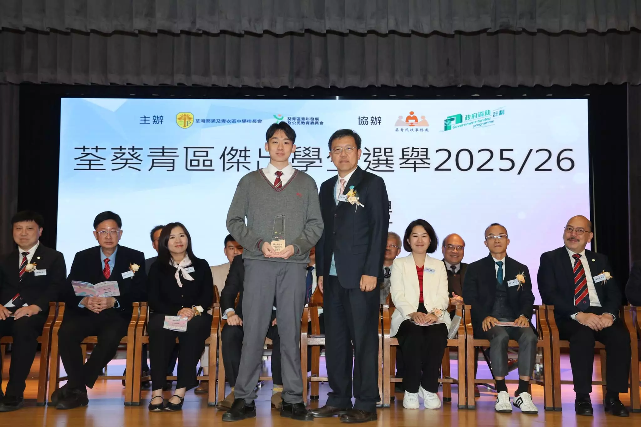 再次恭喜所有獲獎同學!期待佢哋繼續茁壯成長,成為有抱負、有承擔嘅新一代,將青年力量帶入社區,為國家與香港嘅發展貢獻所長,一同譜寫盛世新篇章!