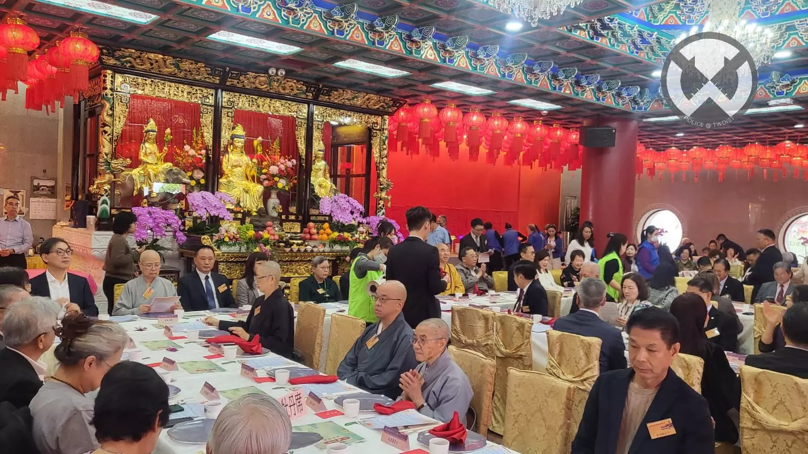 荃灣警區一向與社會各界維持緊密聯繫,今次西方寺春茗素筵,現場大約有 240位嘉賓齊聚一堂,場面非常熱鬧!當中多位重要嘉賓亦親臨午宴,包括中央政府駐港聯絡辦協調部朱文部長,荃灣民政事務專員區家盛JP,前立法會主席范徐麗泰女仕GBM,GBS,CBE,JP,一聚全國政協委員及立法會議員,以及多位地區人士等。