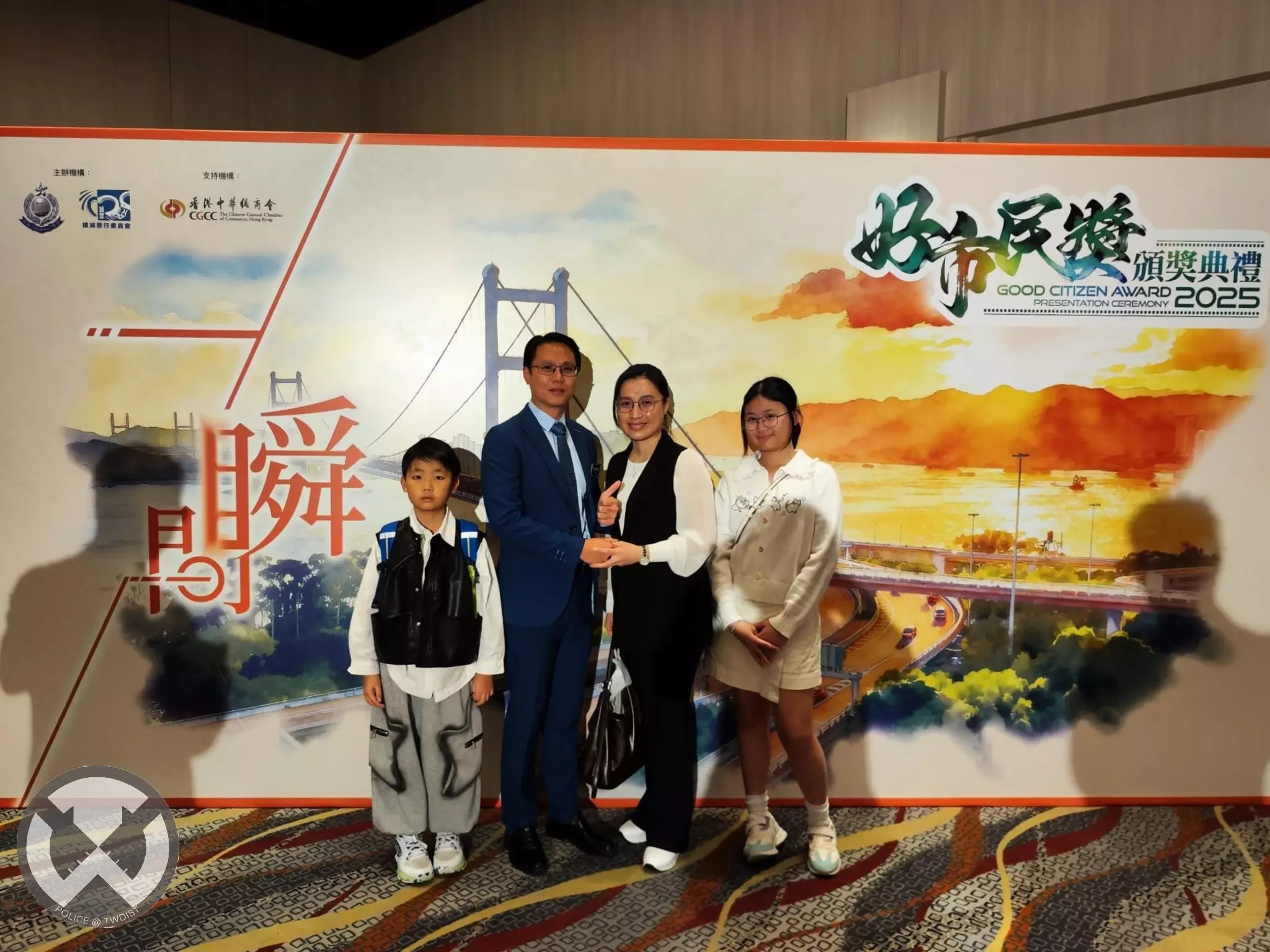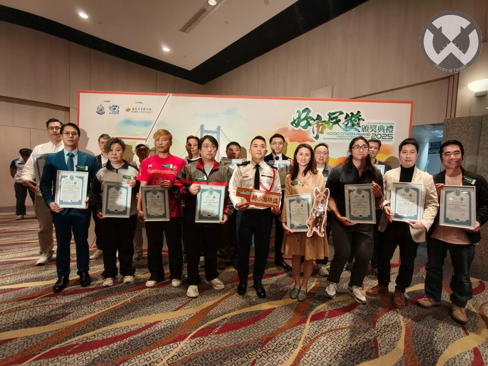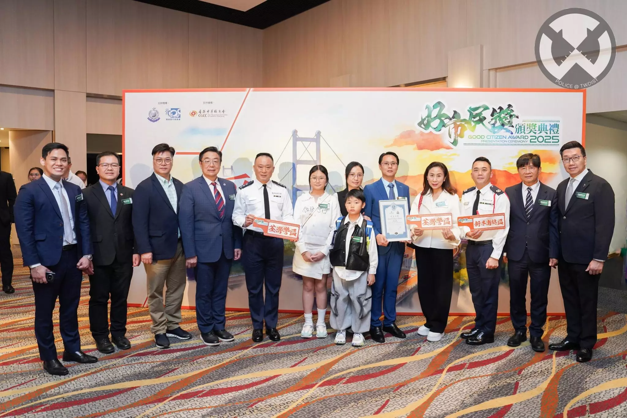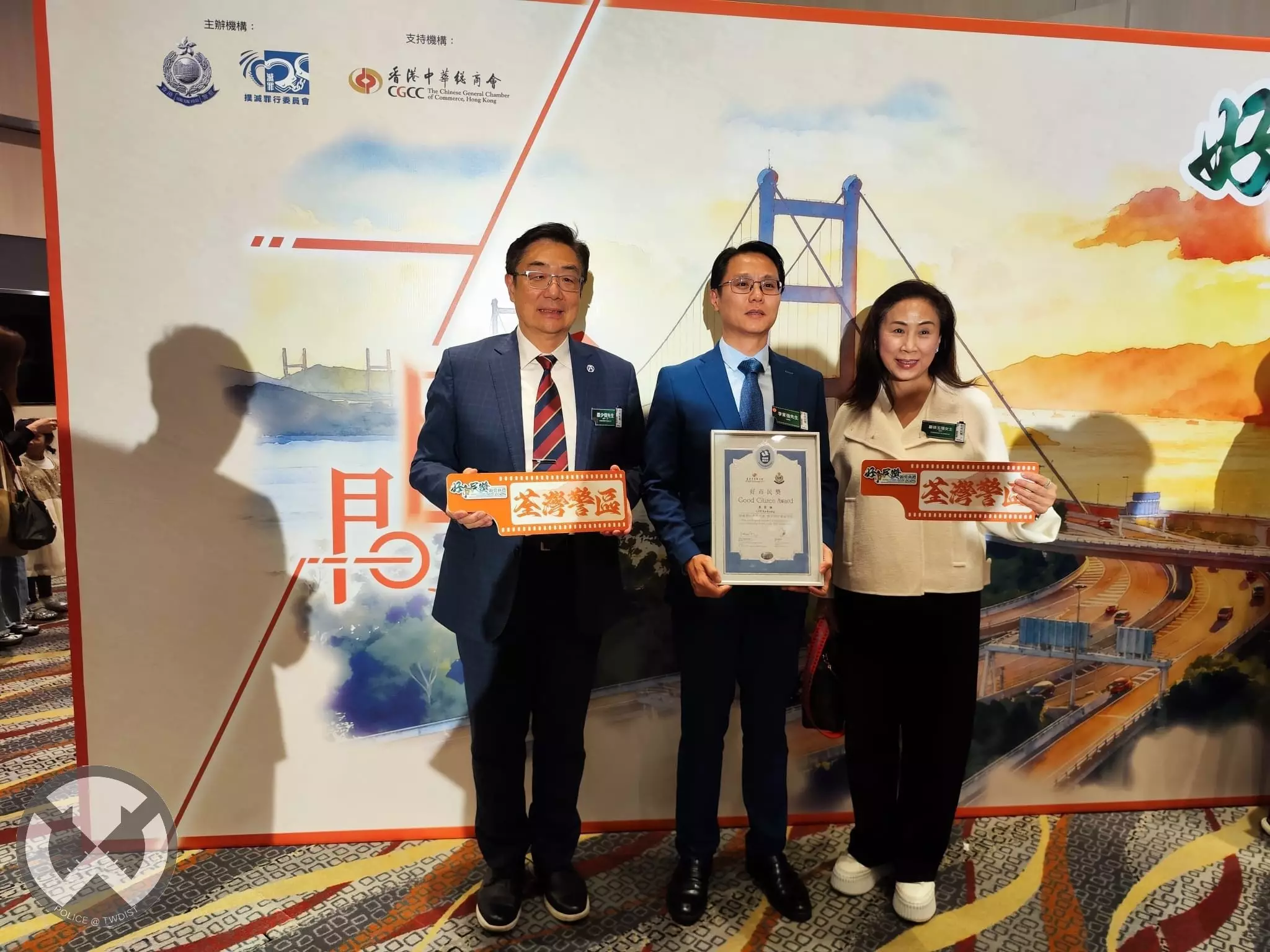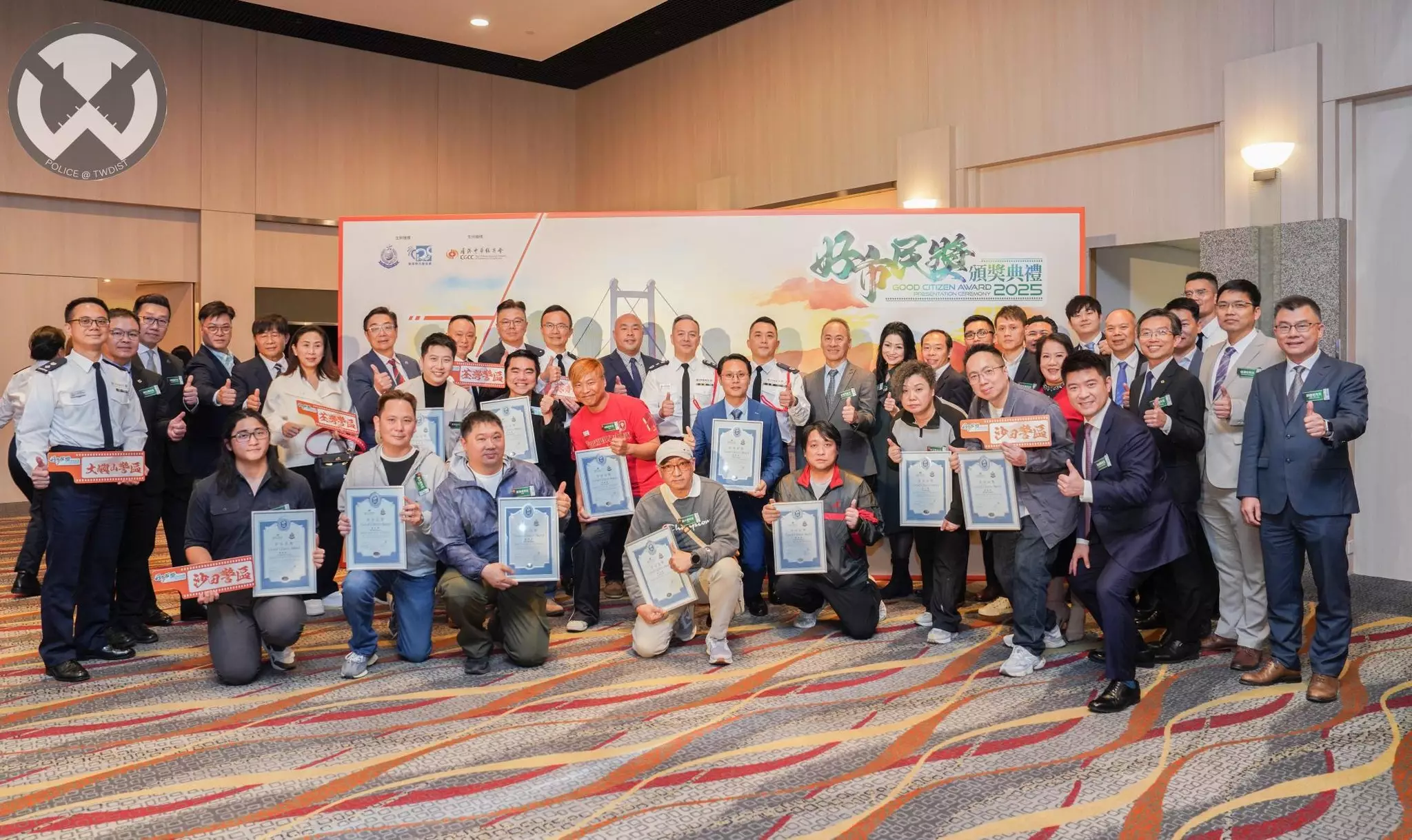 最後,新界南總區指揮官張惠華助理處長、荃灣警區指揮官羅家康總警司以及荃灣區撲滅罪行委員會主席羅少傑先生 MH, JP 亦感謝一眾得獎者為社區嘅無私奉獻,並希望更多市民以佢為榜樣,一齊為社會出一分力,共建更安全、更和諧嘅社區